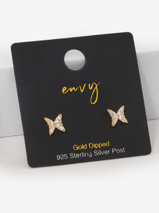 18K Gold Dipped CZ Pave Butterfly Stud Earrings