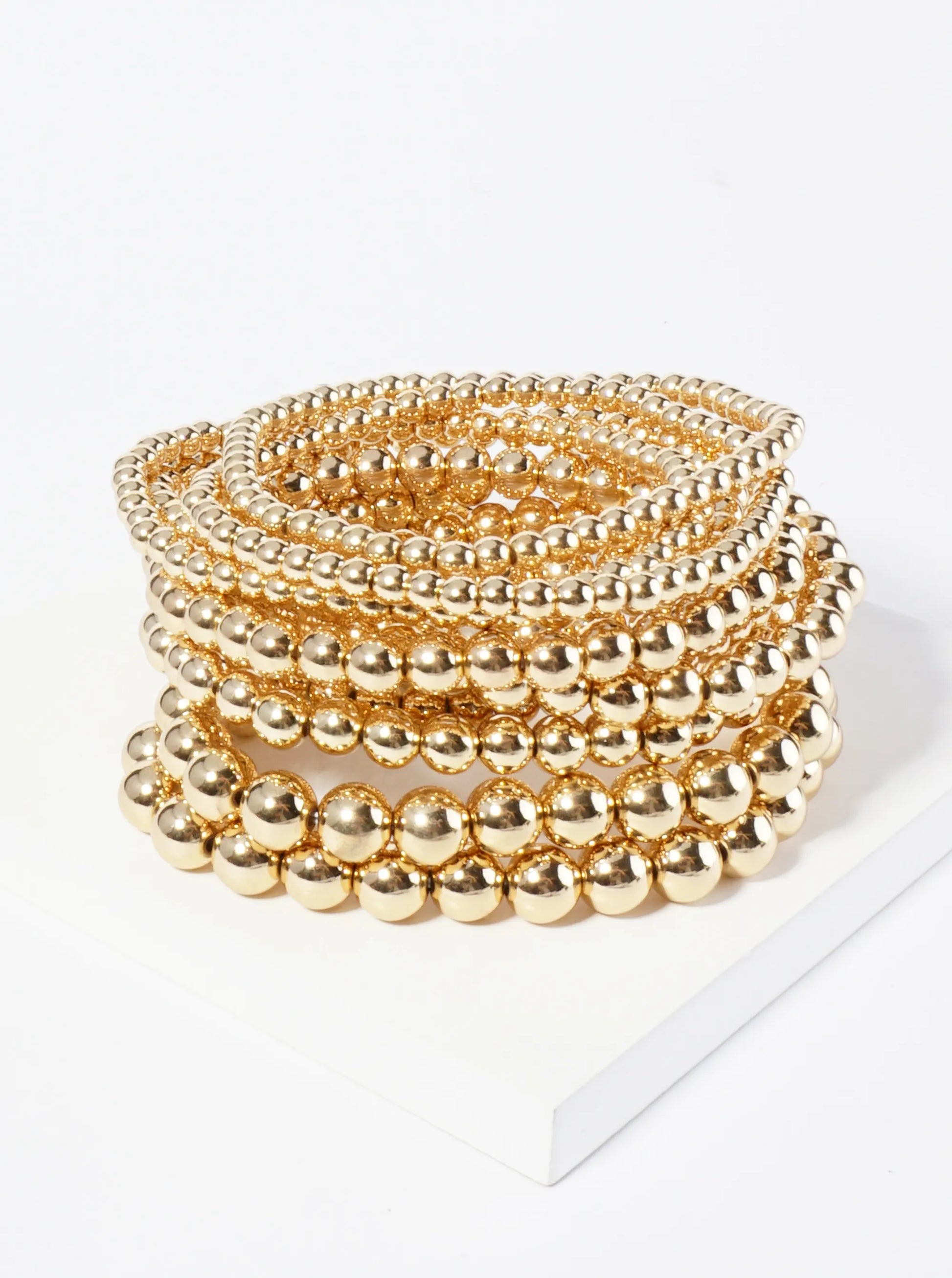 10-PC-Set Metallic Ball Beads 4mm To 10mm Stackable Stretch Bracelet