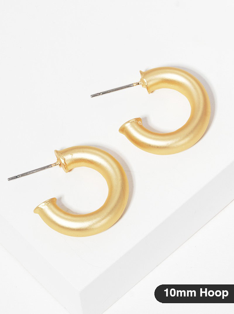 These 10mm Hoops Feature A Sleek, Minimalist Design Crafted From Hollow Brass, Offering A Lightweight Feel With A Bold, Polished Finish. The Smooth Surface Reflects Light Beautifully, Adding A Subtle Shine To Your Look. Compact Yet Striking, They Provide A Versatile And Elegant Accent That Pairs Well With Both Casual And Formal Outfits.