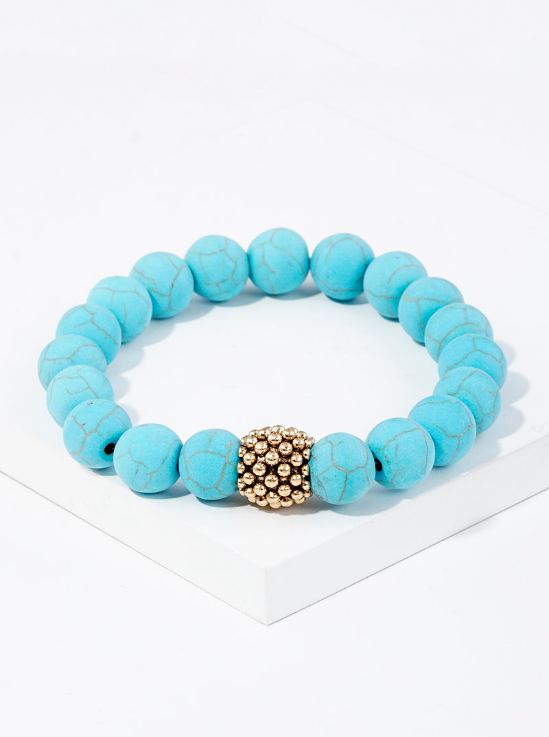 10mm Semi-Precious Natural Stone With Metal Bead Accent Stretch Bracelet