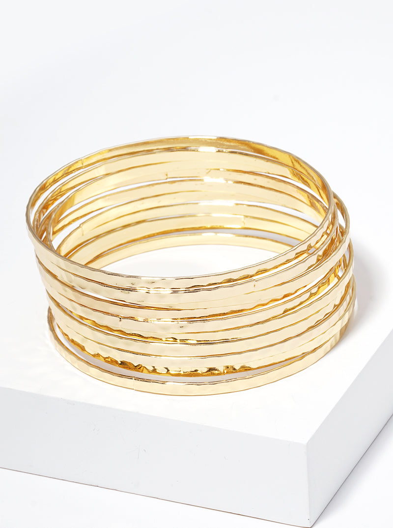 10pcs Set Hammered Metal Multi Bangle Bracelet