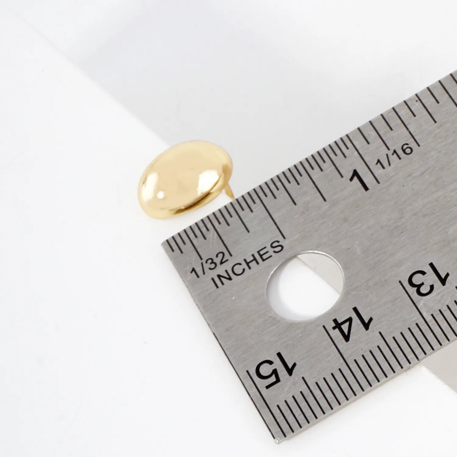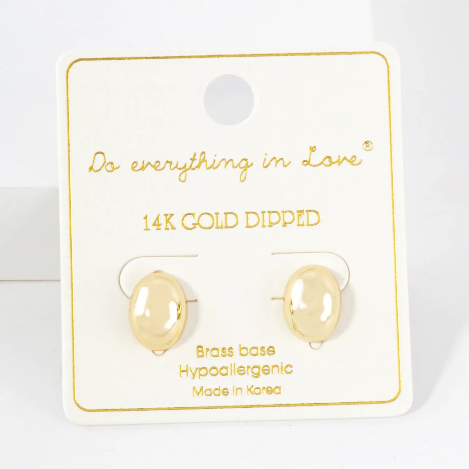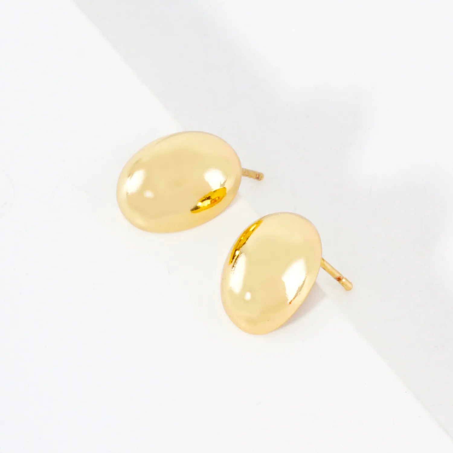 Understated And Effortlessly Chic, These 12mm Polished Oval Stud Earrings Are A Refined Take On Everyday Essentials. Crafted From Durable Brass And Dipped In Rich 14K Gold, Their Smooth Oval Shape And High-polish Finish Offer A Soft, Radiant Glow That Flatters Every Skin Tone.