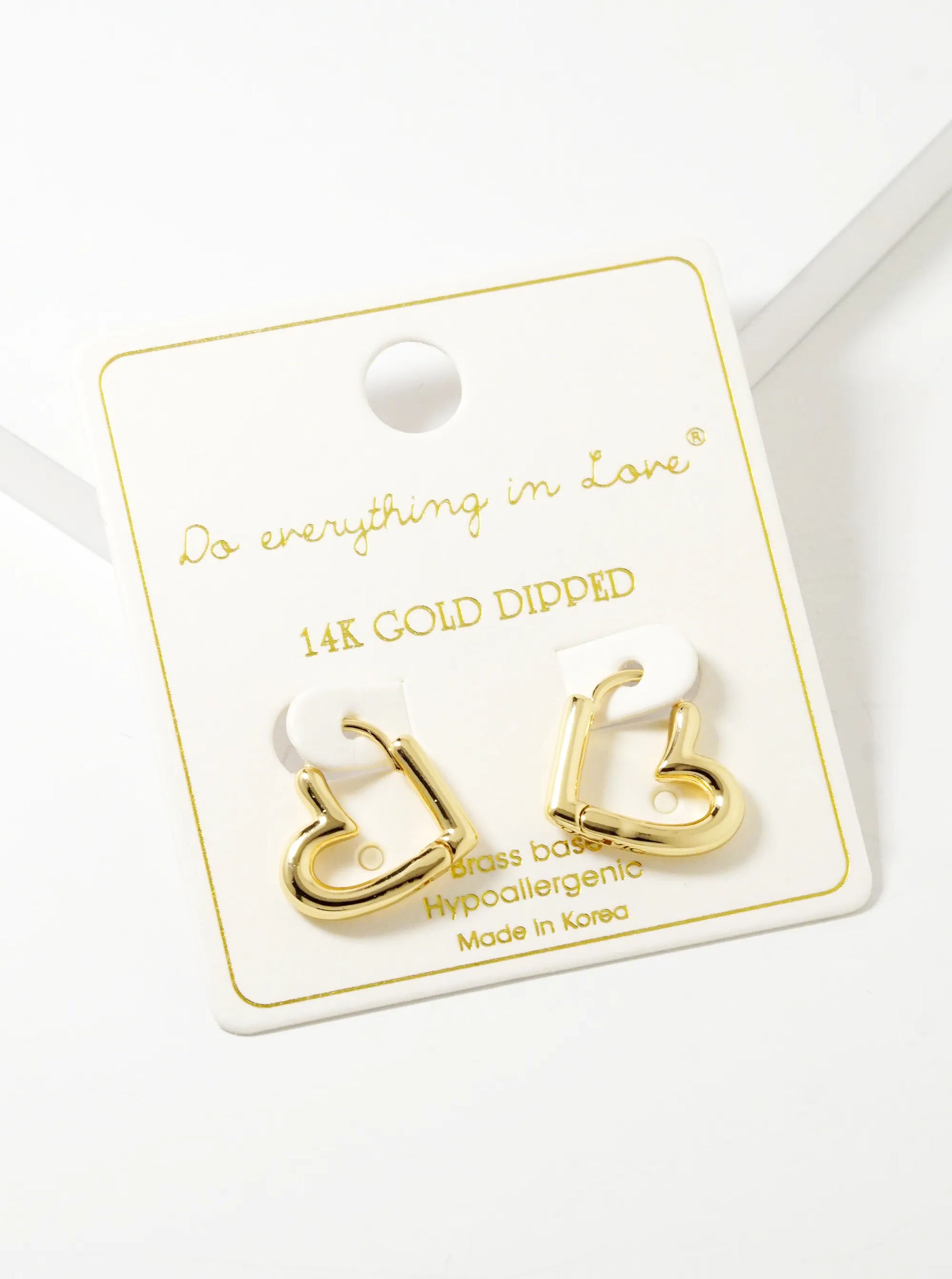 14K Gold Dipped 15mm Heart Shape Huggie Hoop Earrings