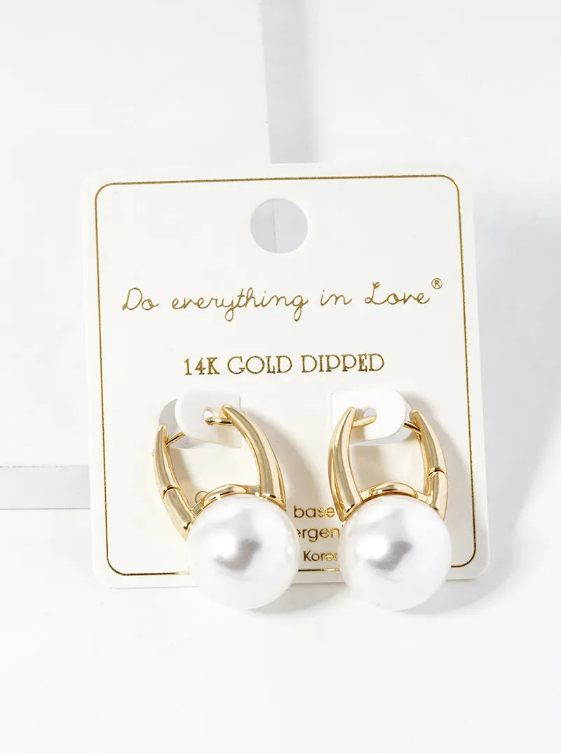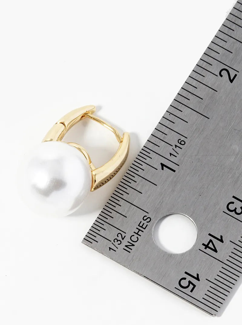 14K Gold Dipped 15mm Pearl Bead Drop Huggie Hoop Earrings