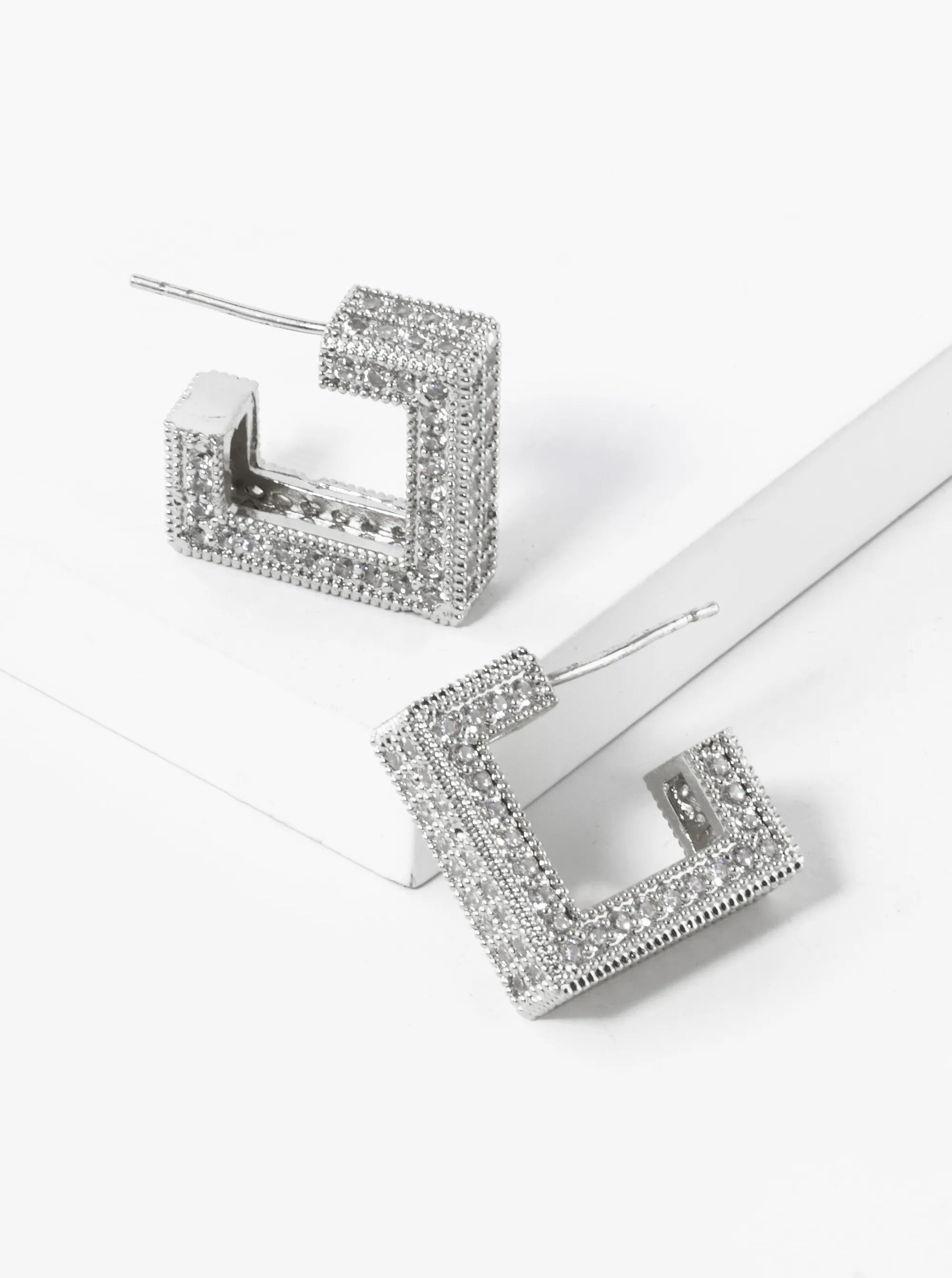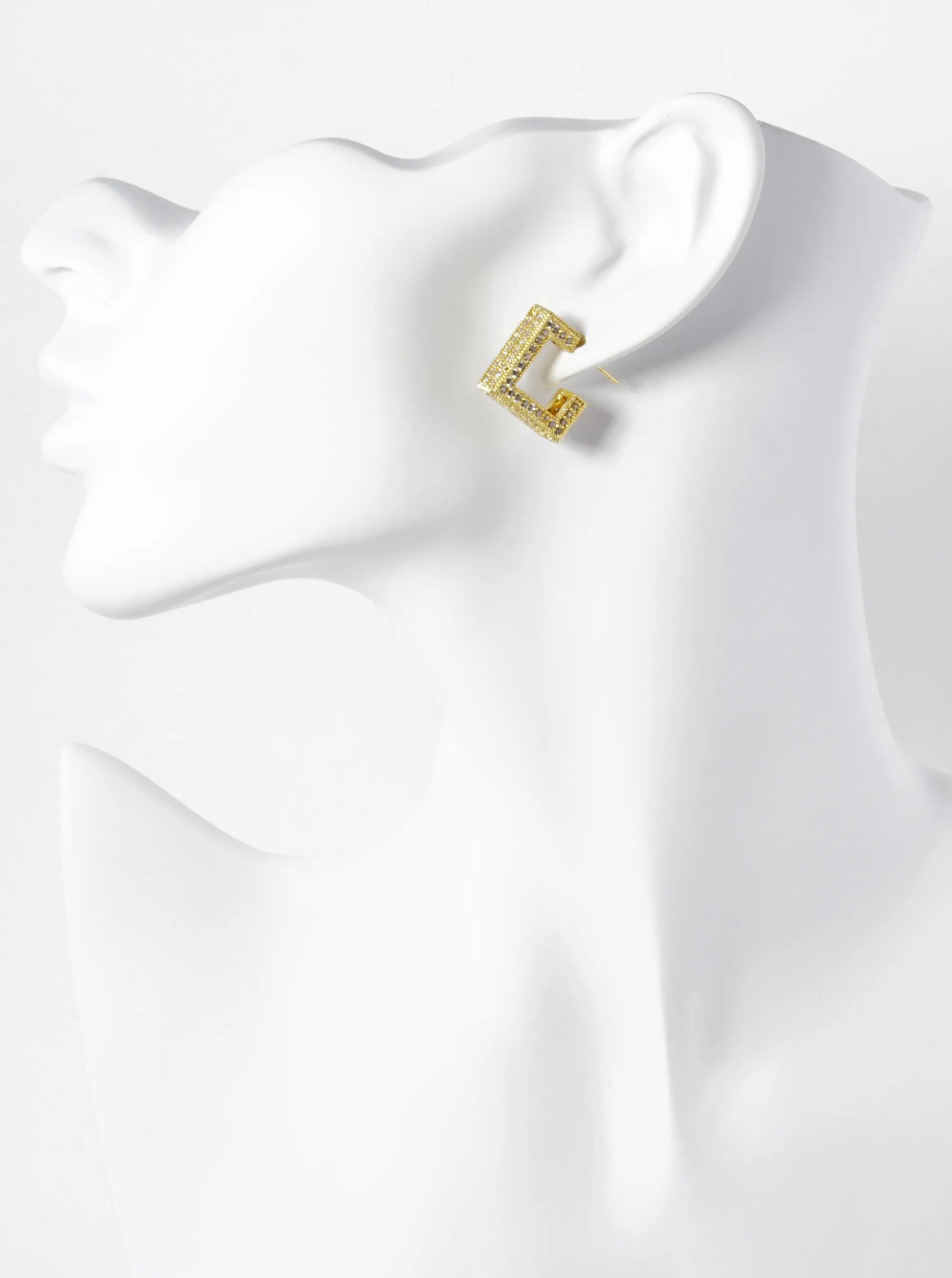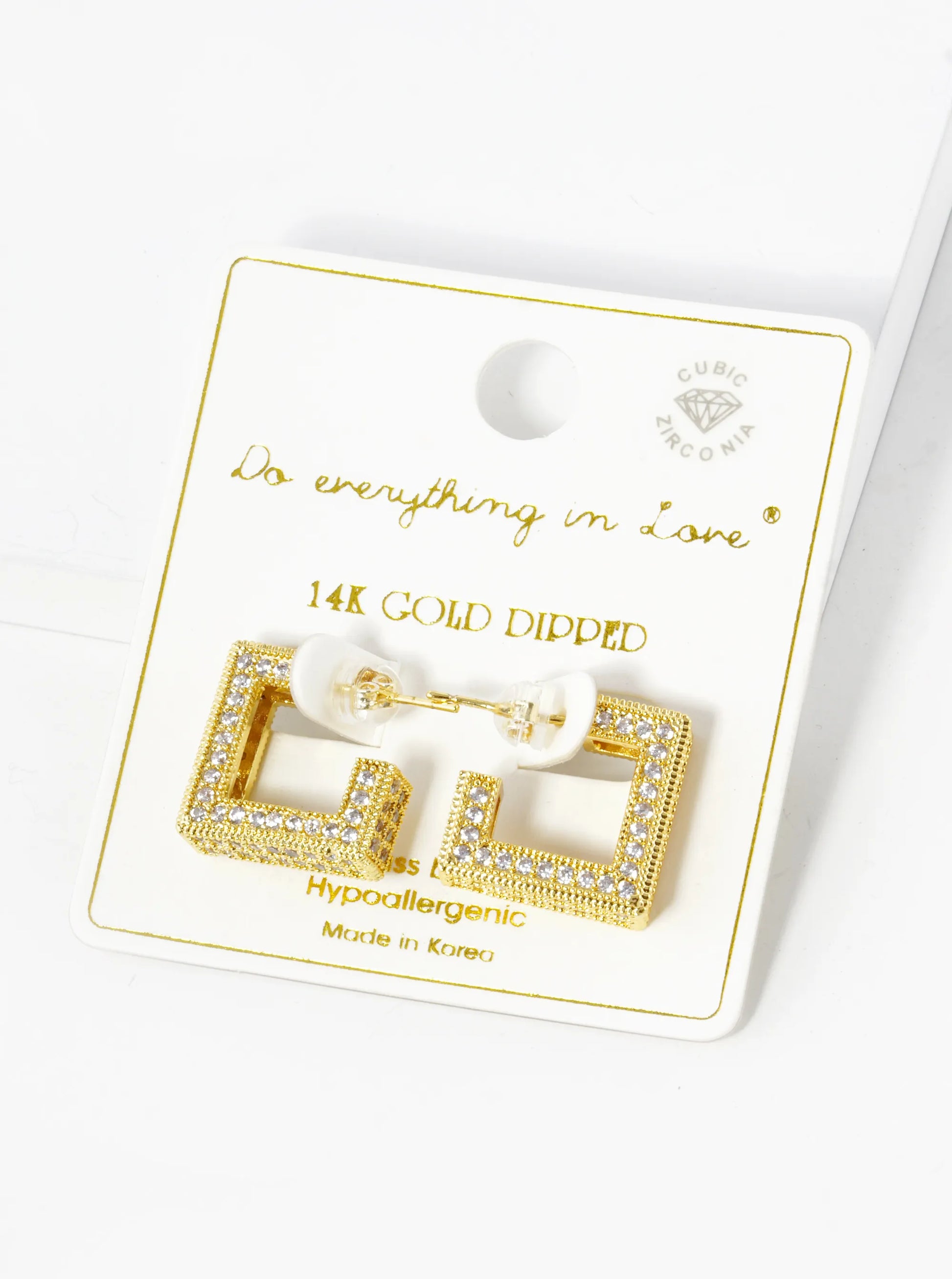 14K Gold Dipped 16mm Cubic Zirconia Pave Square Shape Open Hoop Earrings