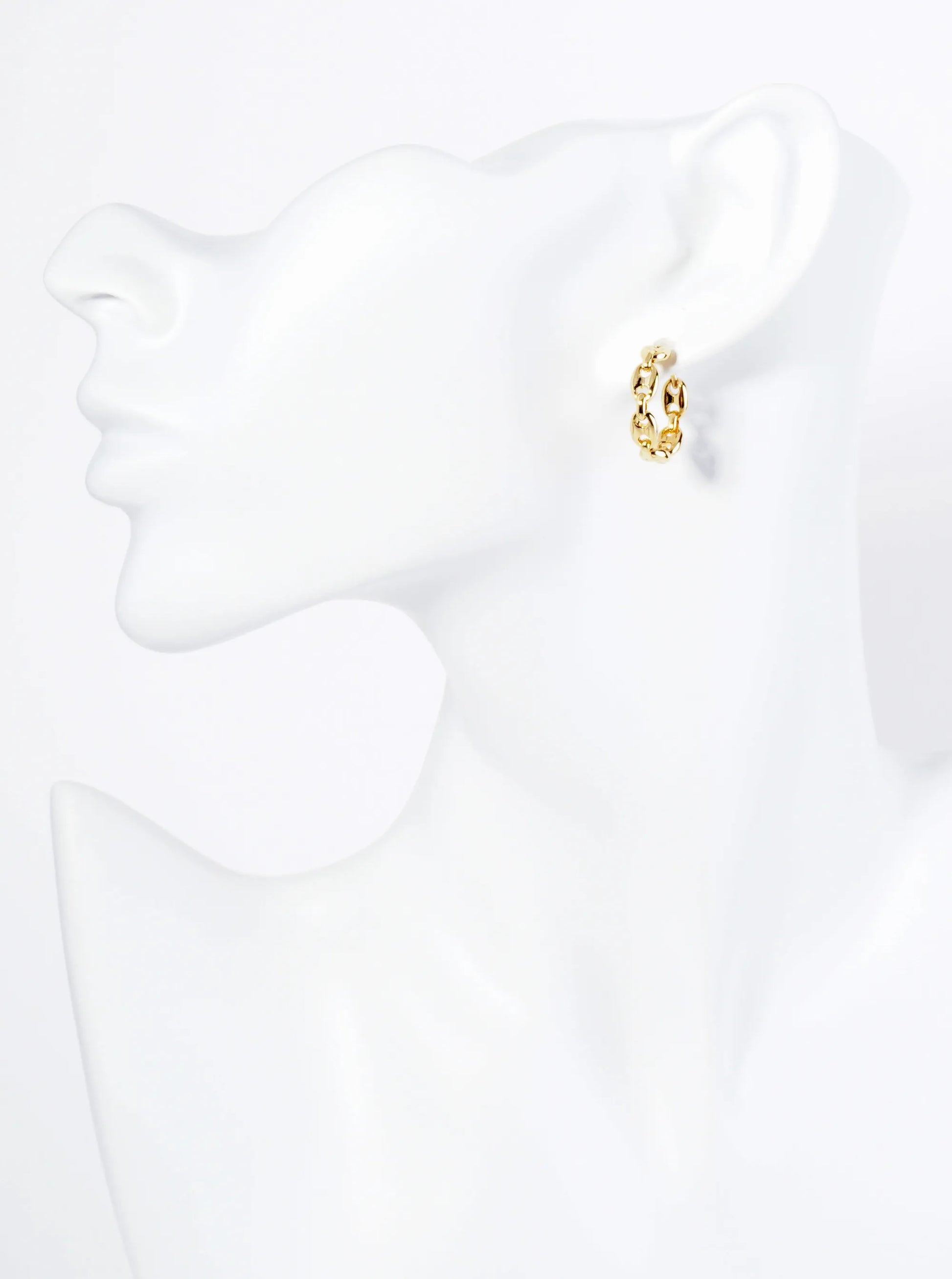 14K Gold Dipped 18mm Coffee Bean Chain Huggie Hoop Earrings