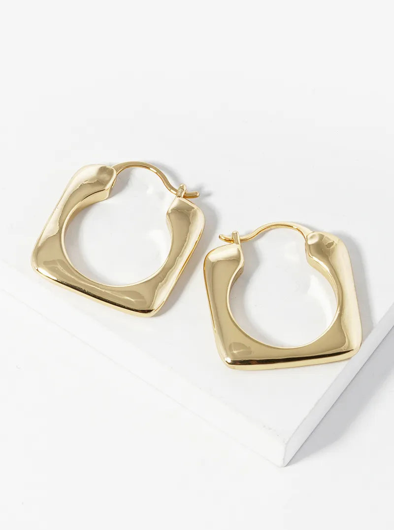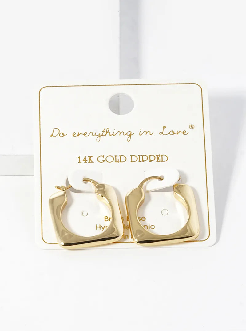 14K Gold Dipped 20mm Square Latch Back Hoop Earrings