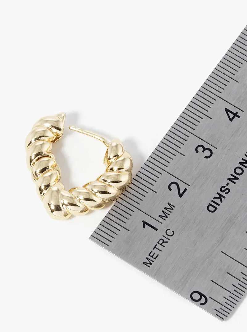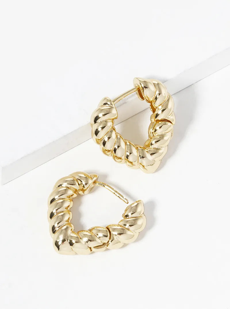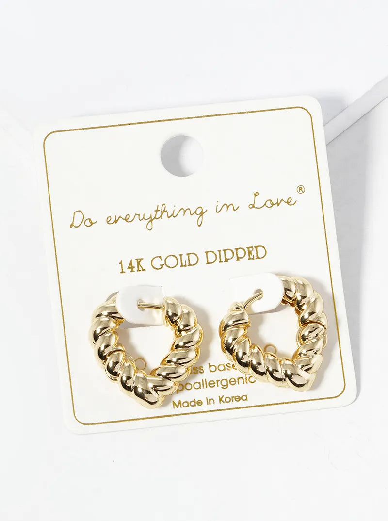 14K Gold Dipped 20mm Textured Heart Hinged Hoop Earrings