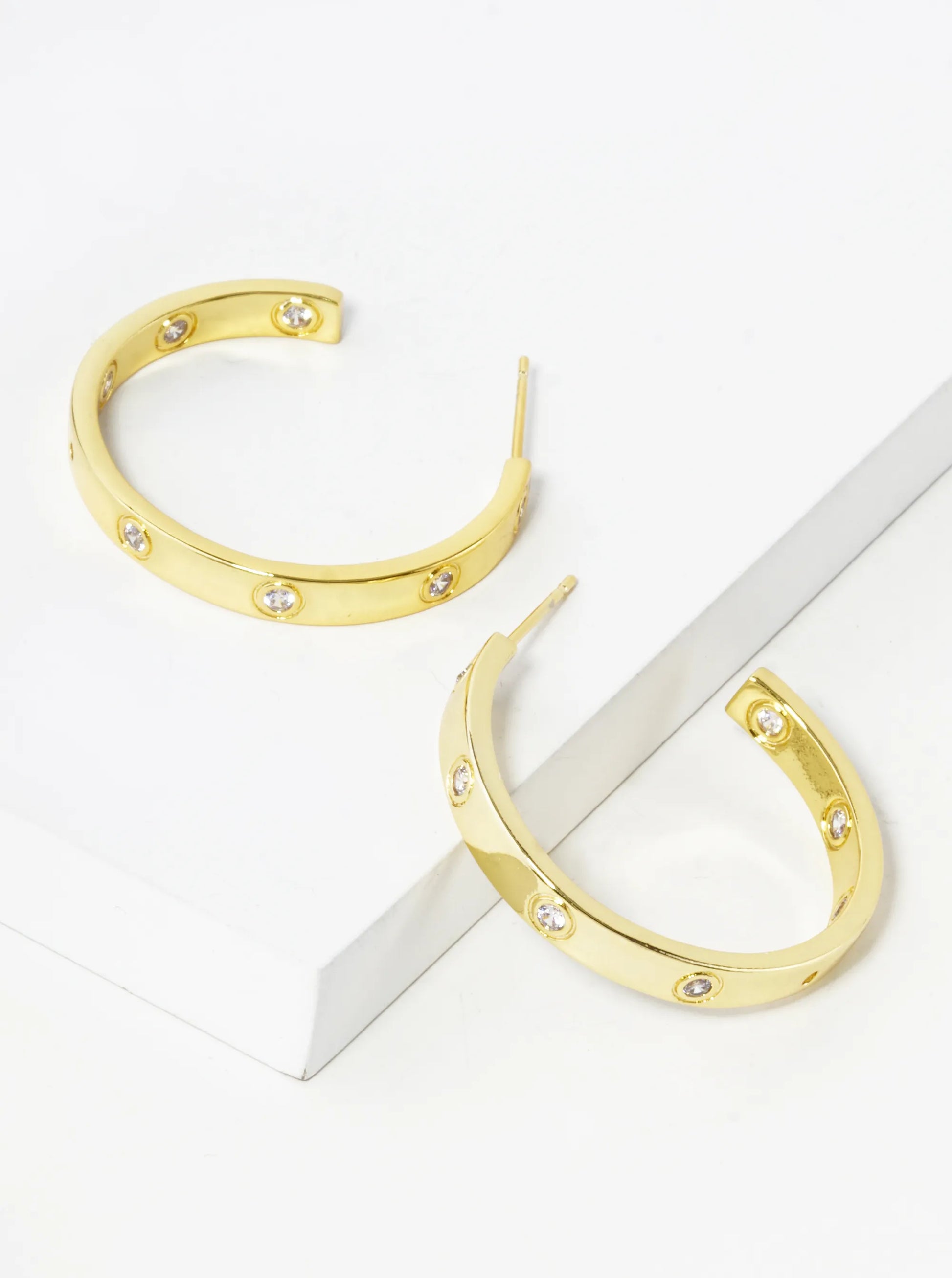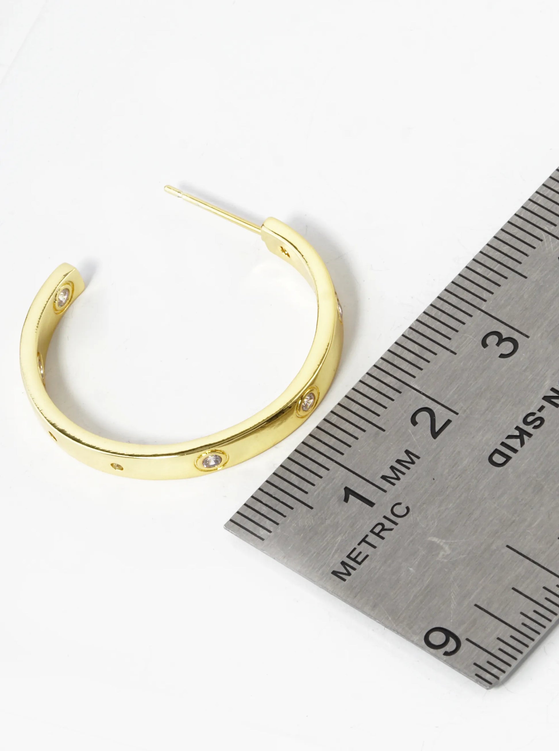 14K Gold Dipped 30mm Cubic Zirconia Open Hoop Earrings