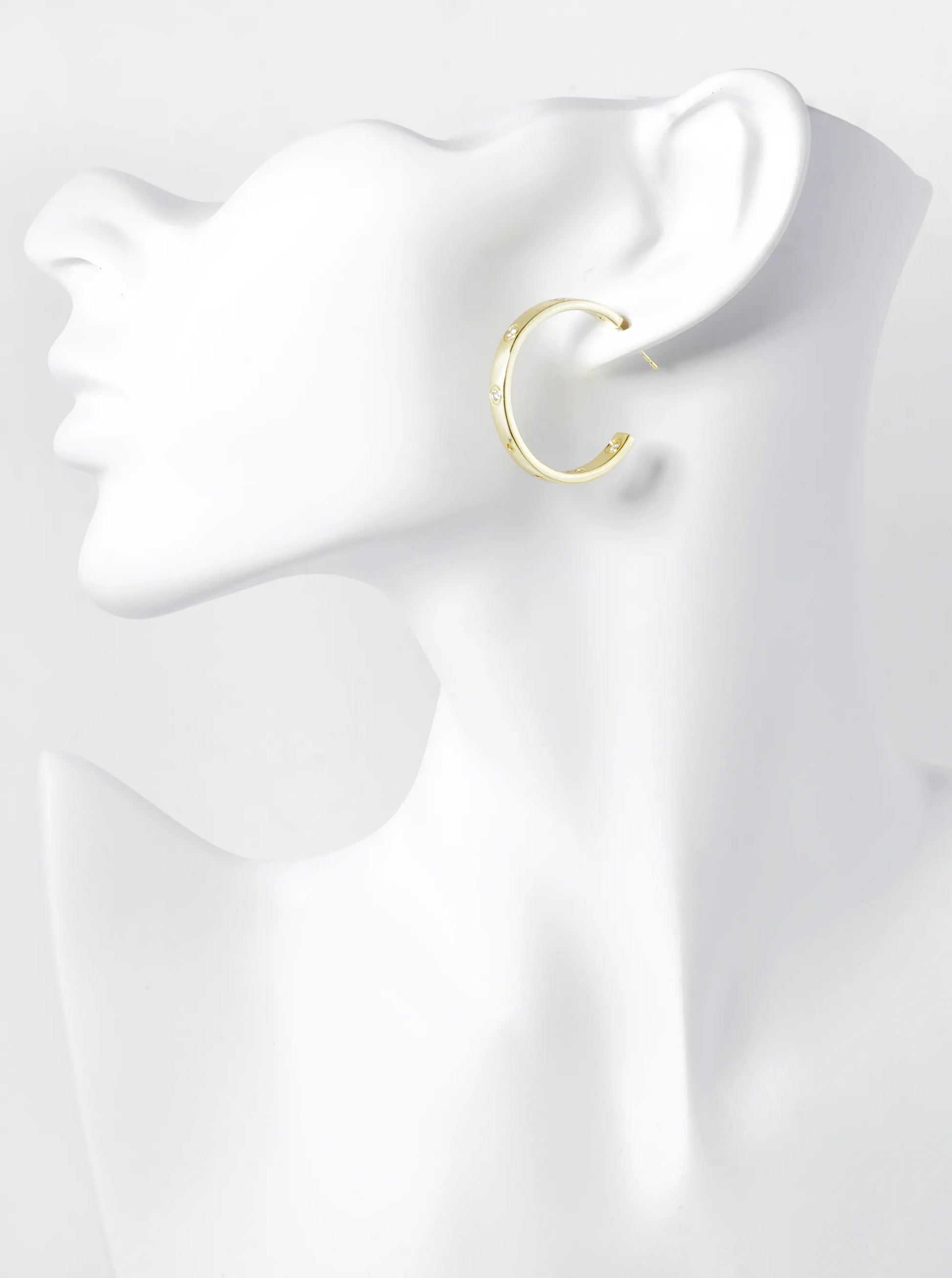The 14K Gold Dipped Cubic Zirconia 30mm Open Hoop Earrings Are A Striking And Versatile Accessory That Adds A Touch Of Glamour And Sophistication To Any Ensemble. With Their Bold Design, Sparkling Cubic Zirconia Accents, And Luxurious Gold Plating, They Are Sure To Make A Statement Wherever They're Worn.