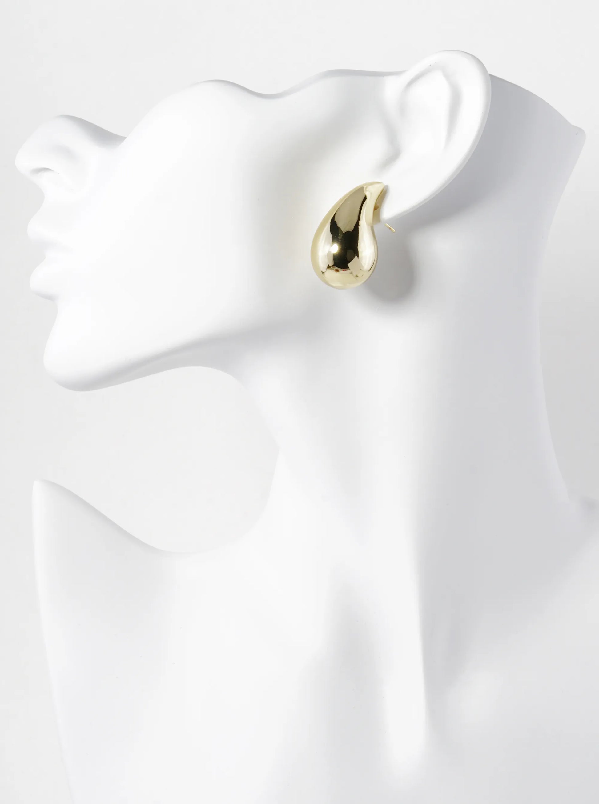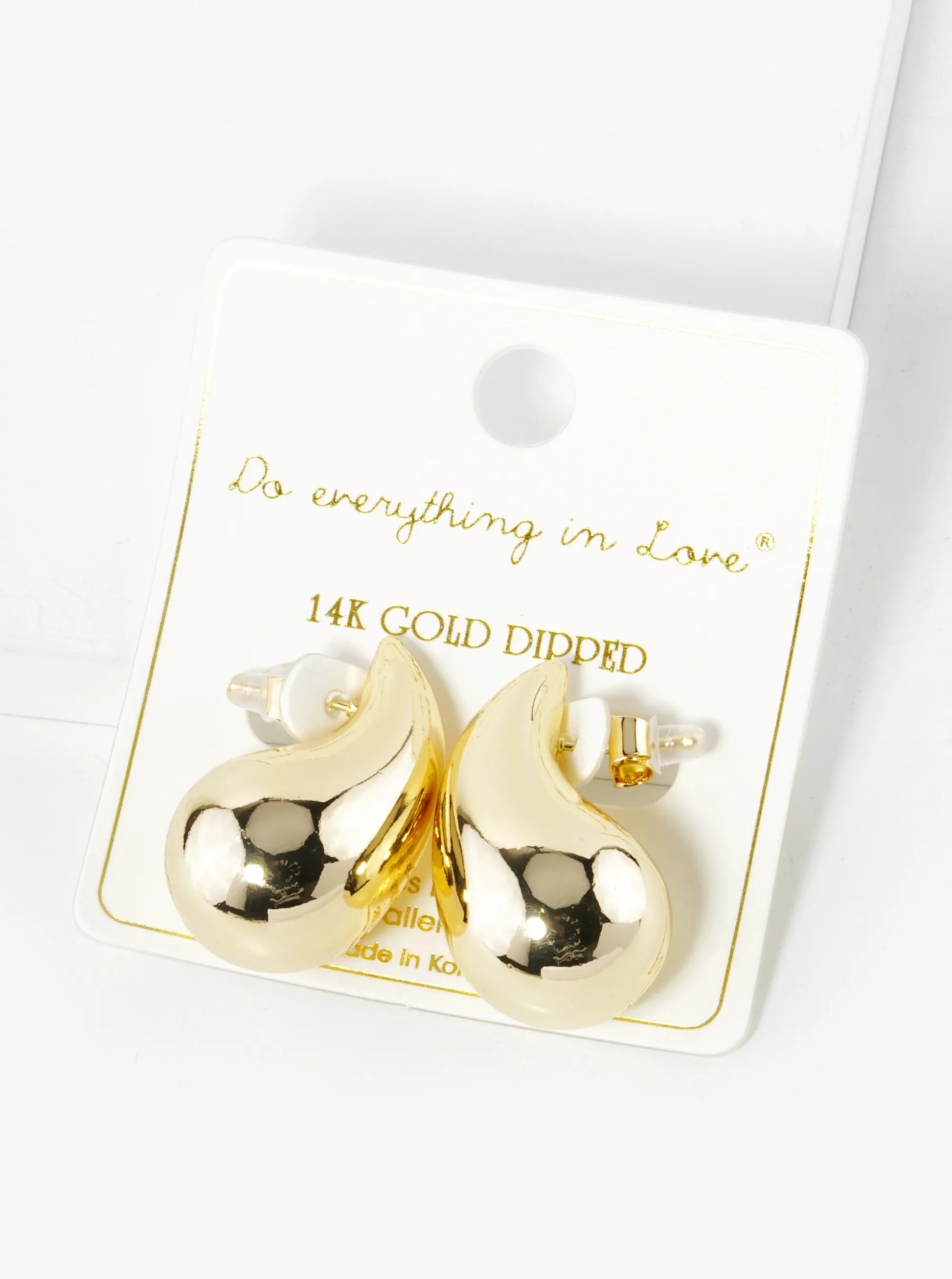 14K Gold Dipped 3D Hollow Puffy Teardrop Stud Earrings