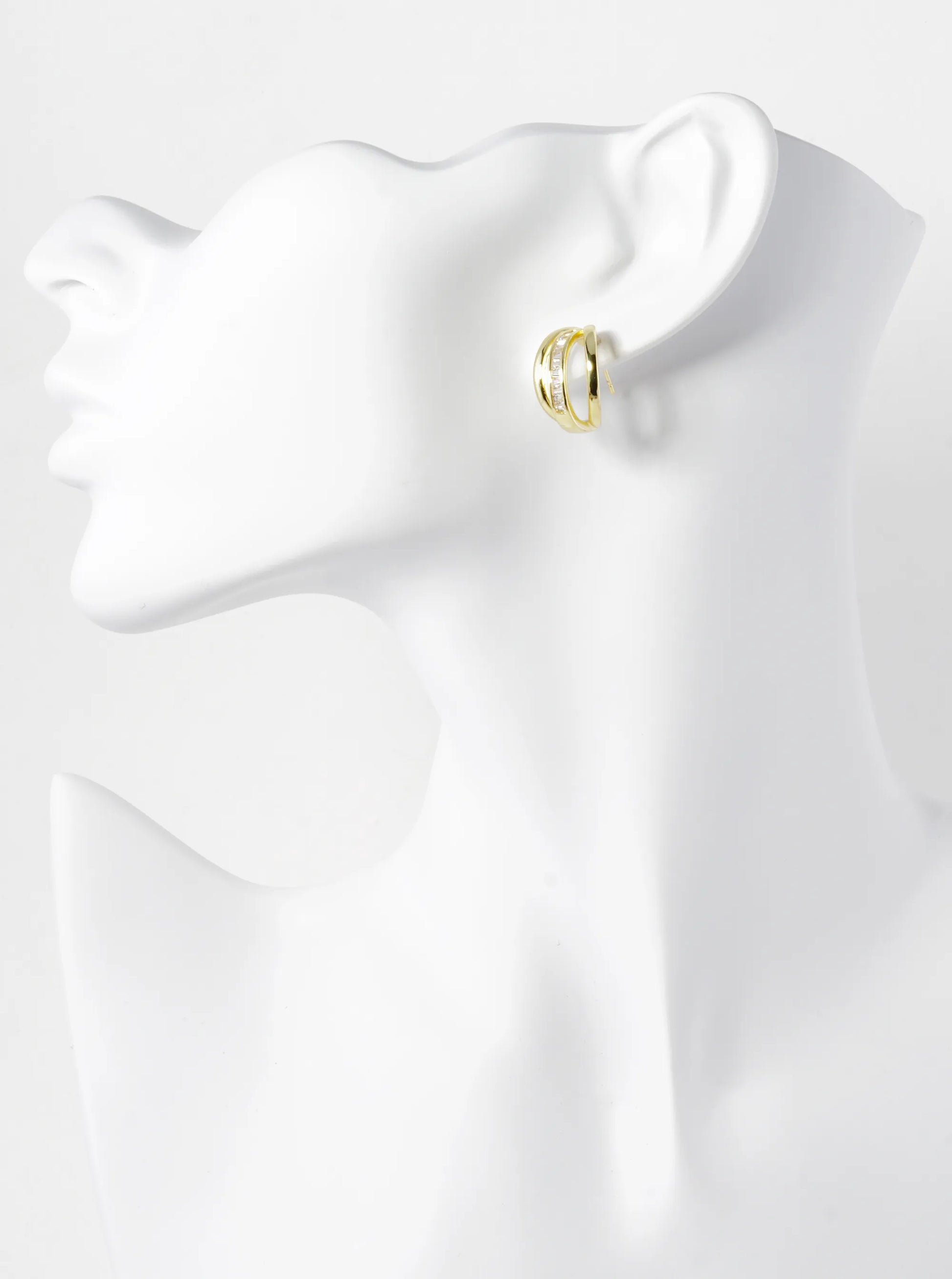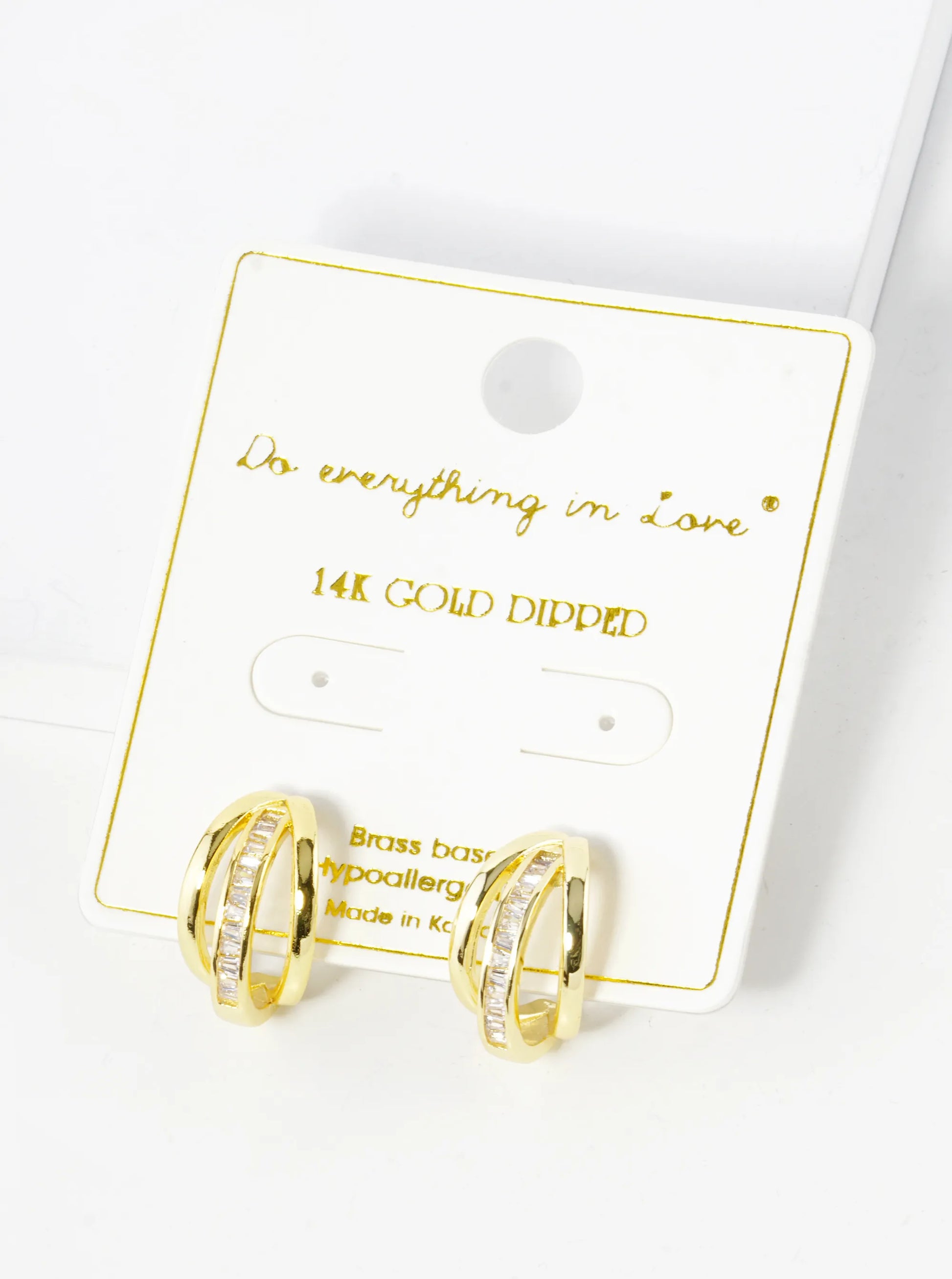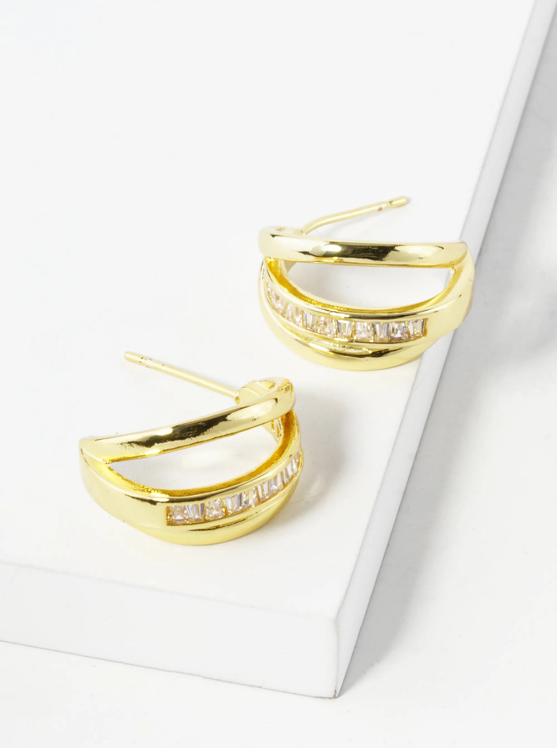 14K Gold Dipped Baguette CZ Accents 20mm Claw Hoop Earrings