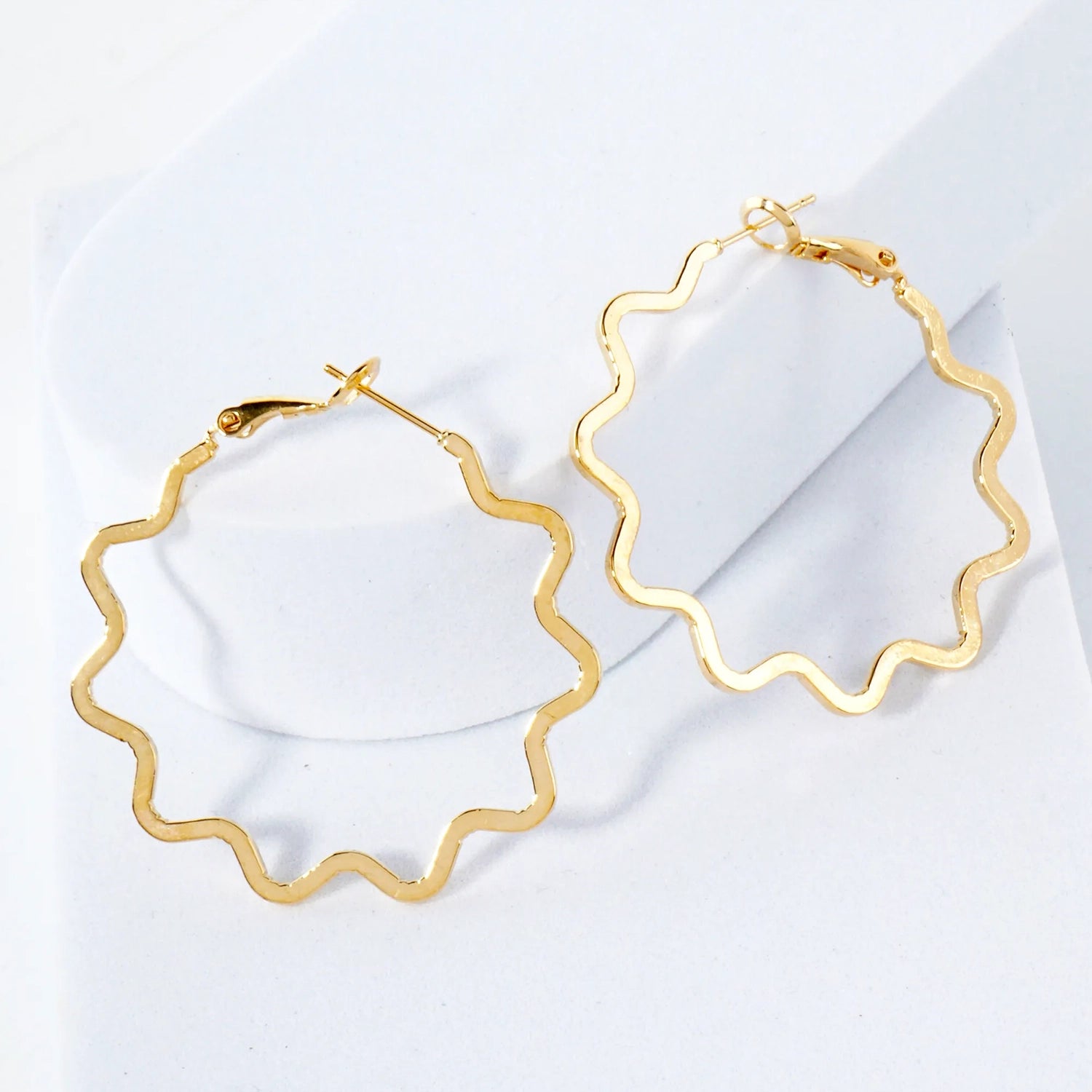 Organic Movement Meets Modern Polish In These Flat Wavy Open Hoop Earrings, Crafted From High-quality Brass And Dipped In Radiant 14K Gold. The Sleek, Flat Silhouette Gently Undulates With A Fluid, Wave-like Form, Adding Soft Dimension And A Touch Of Artistry To A Classic Hoop.