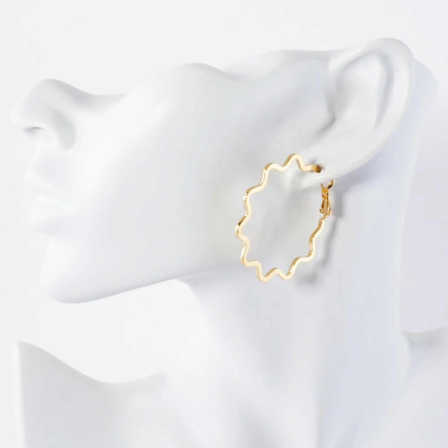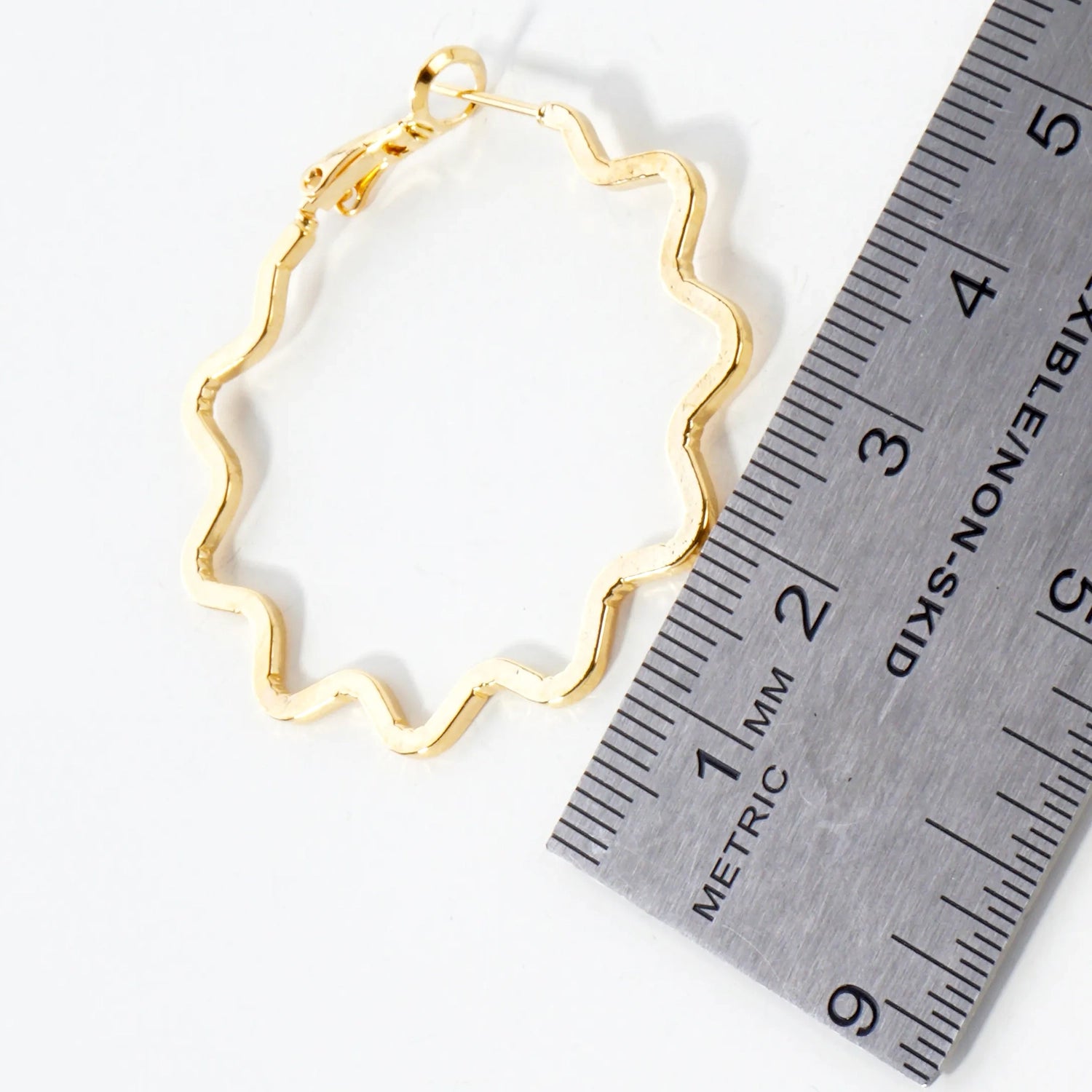 14K-Gold-Dipped Brass Flat Wavy 40mm Open Hoop Earrings