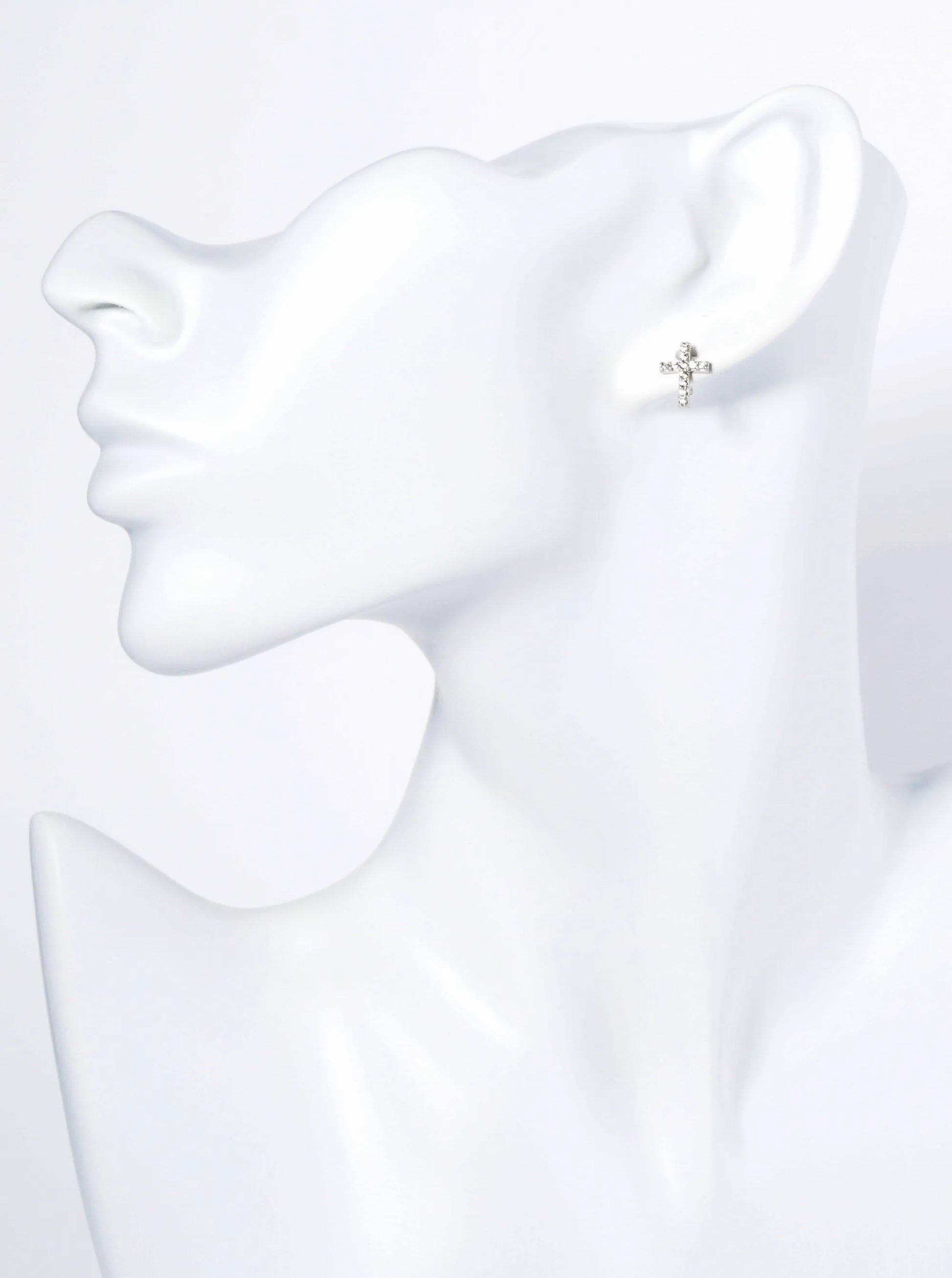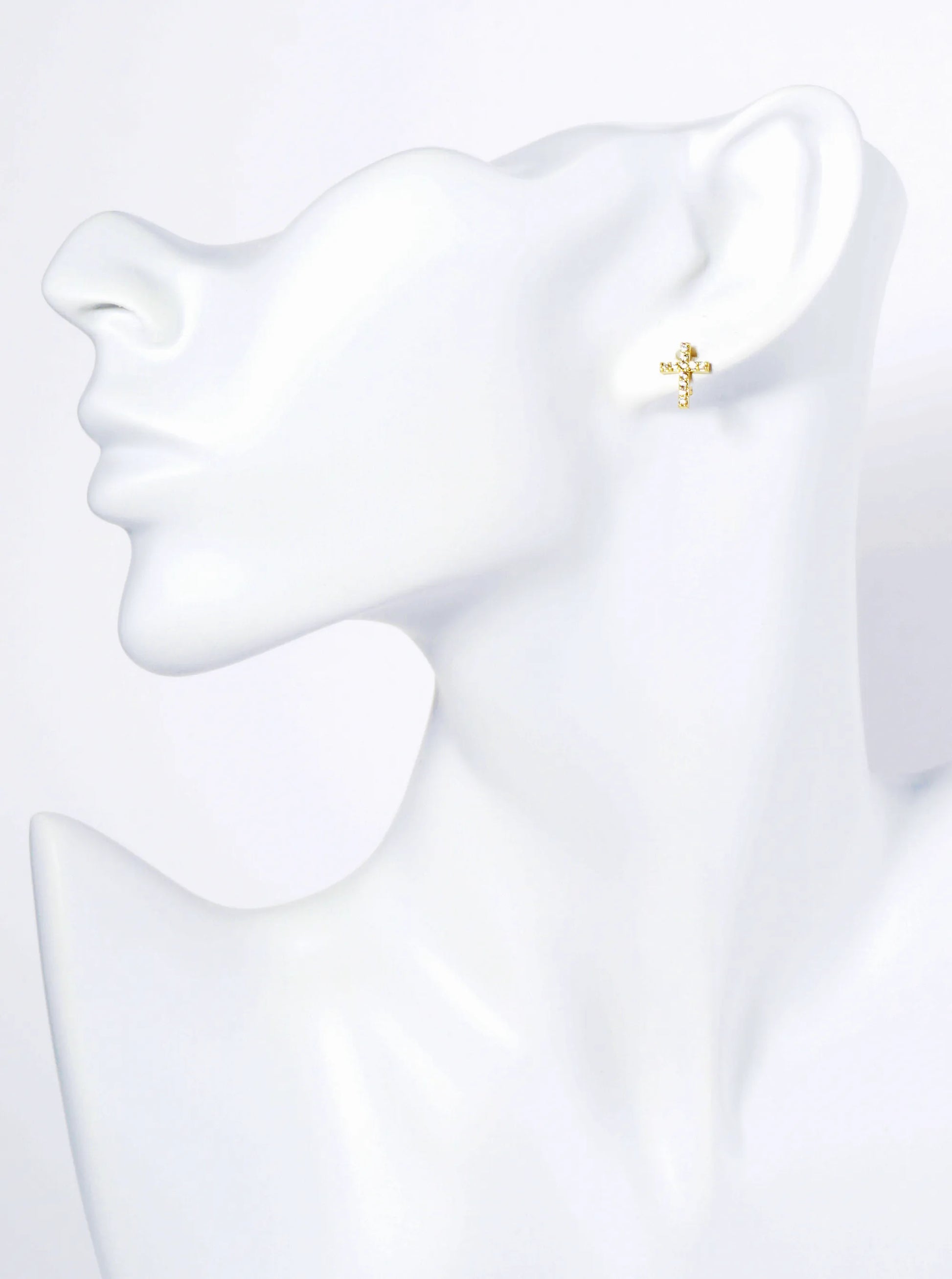 14K Gold Dipped Cubic Zirconia Cross Stud Earrings