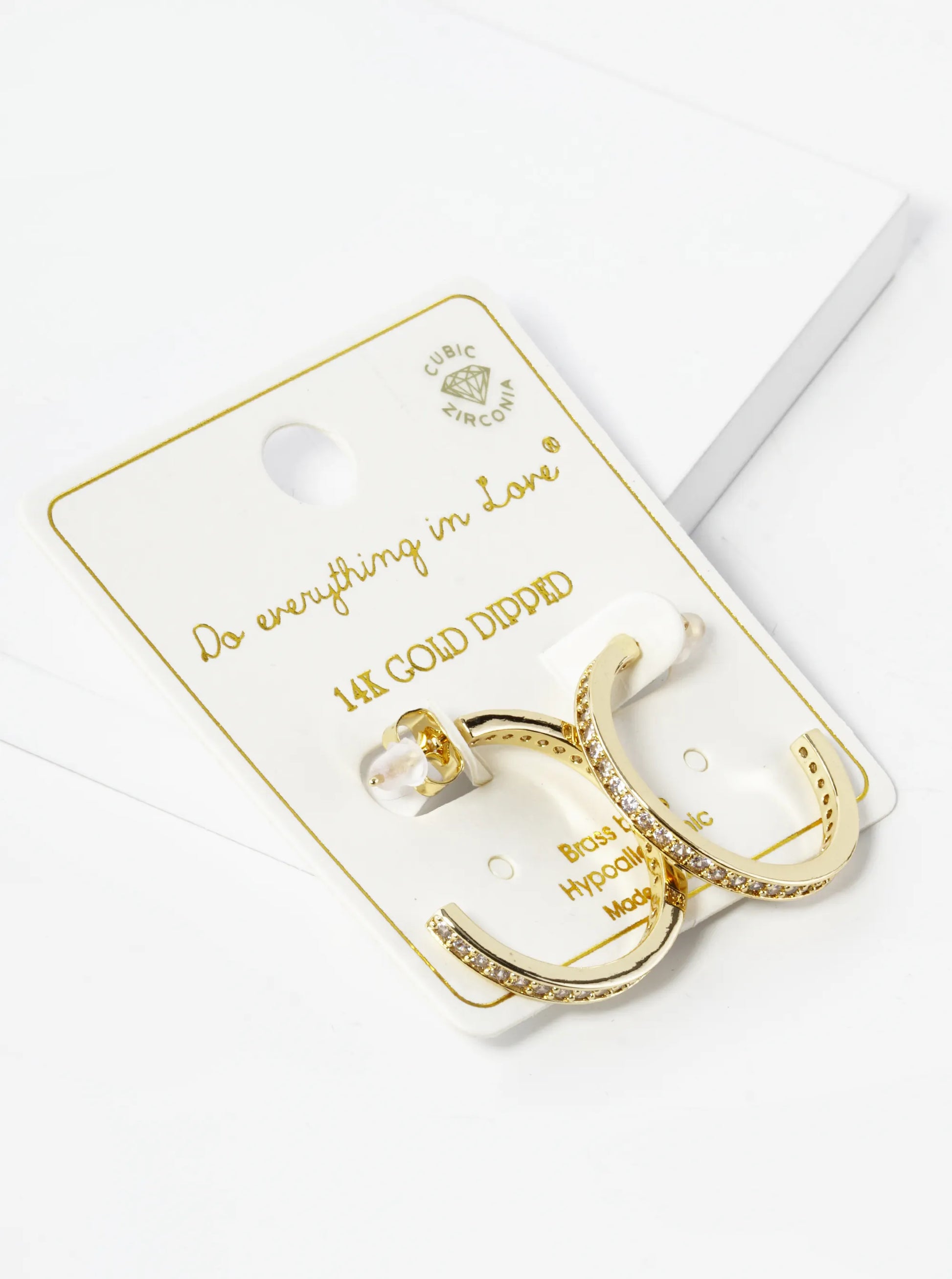 14K Gold Dipped Cubic Zirconia Pave 25mm Open Hoop Earrings