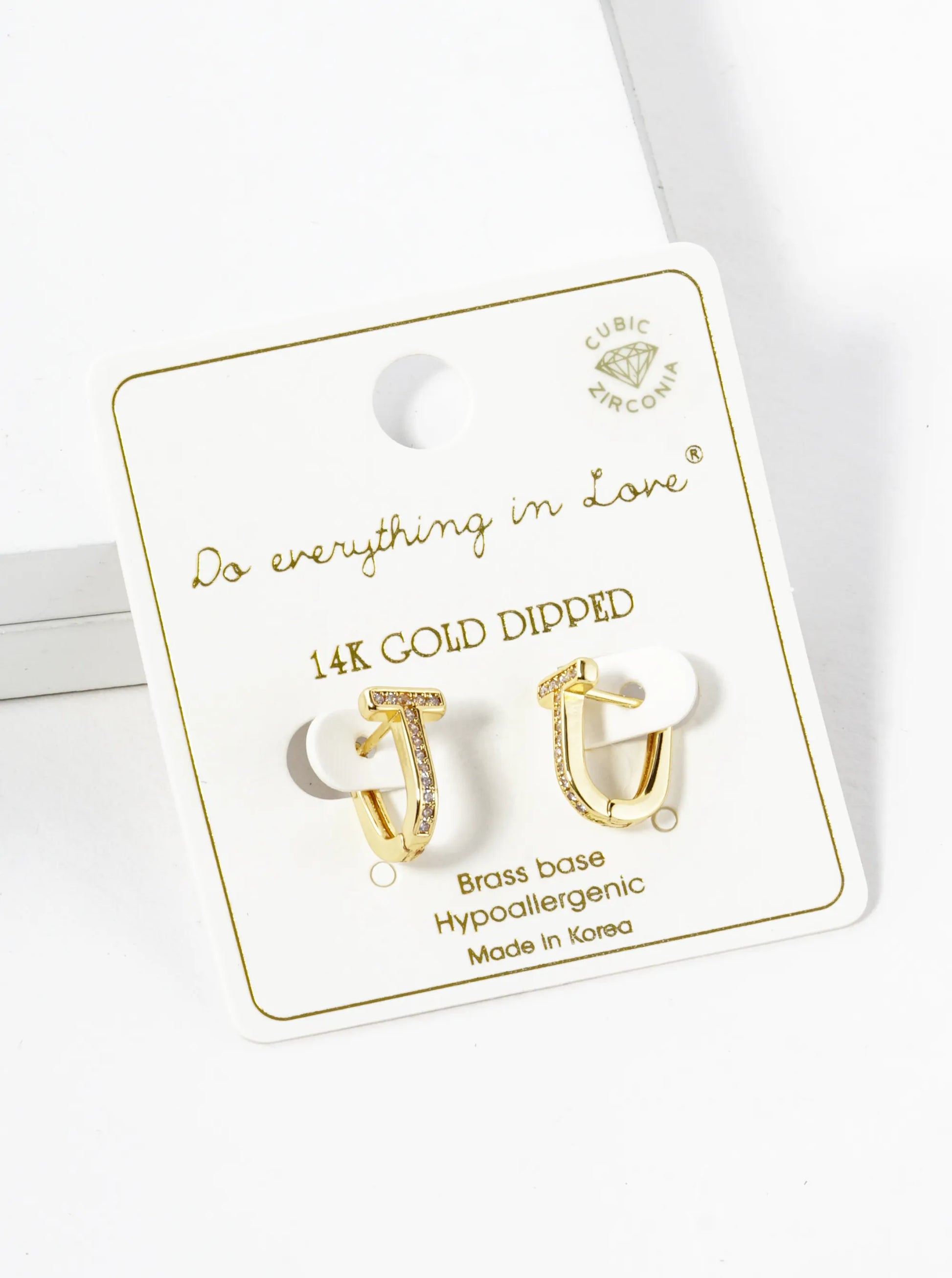 14K Gold Dipped CZ Pave T Shape Huggie Hoop Earrings