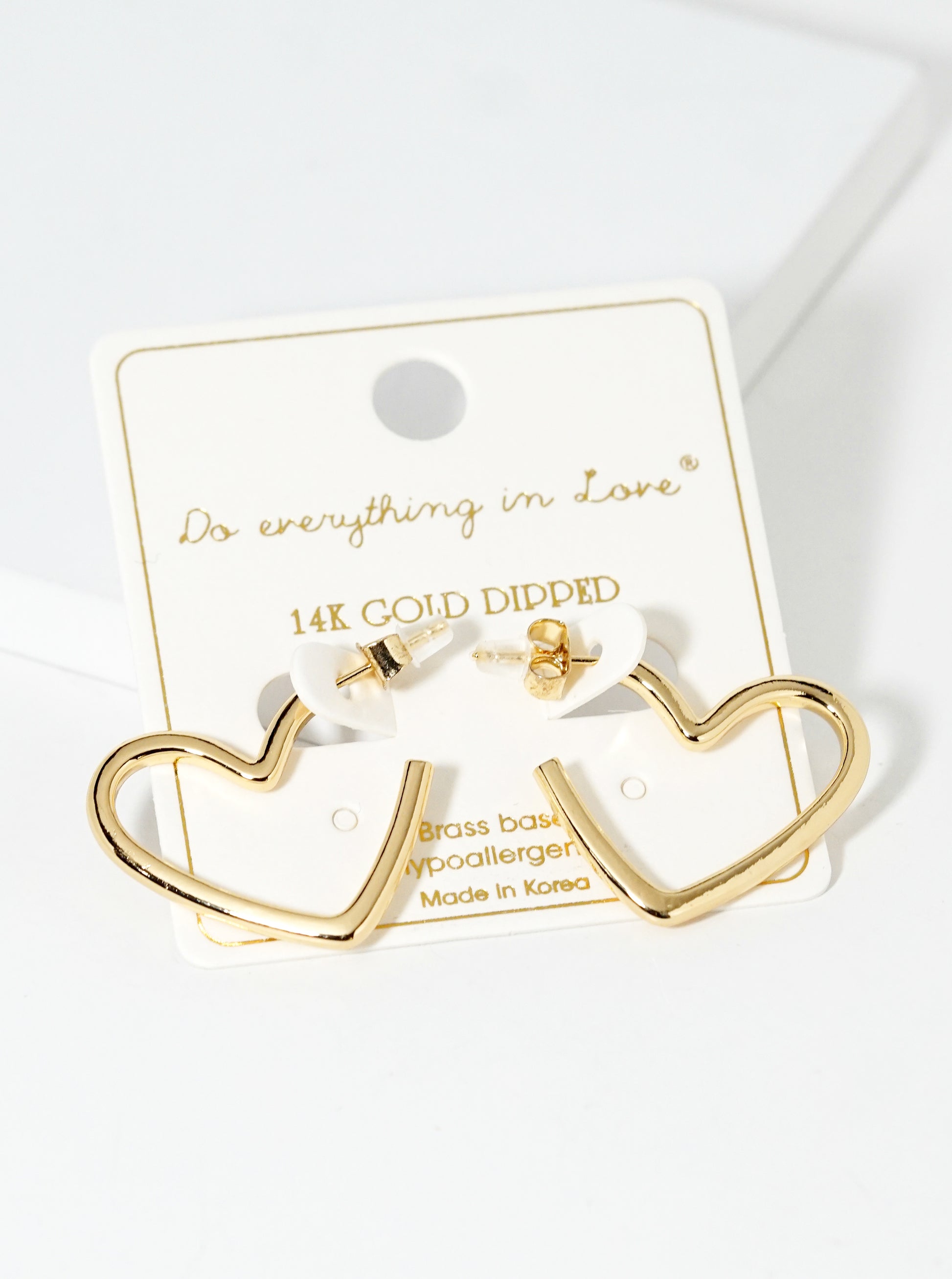 14k Gold Dipped Heart Shape Brass Open Hoop Earrings