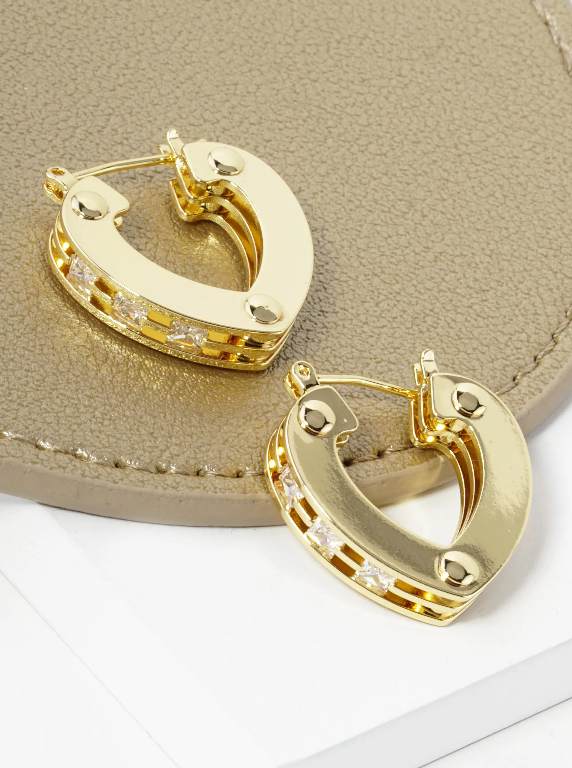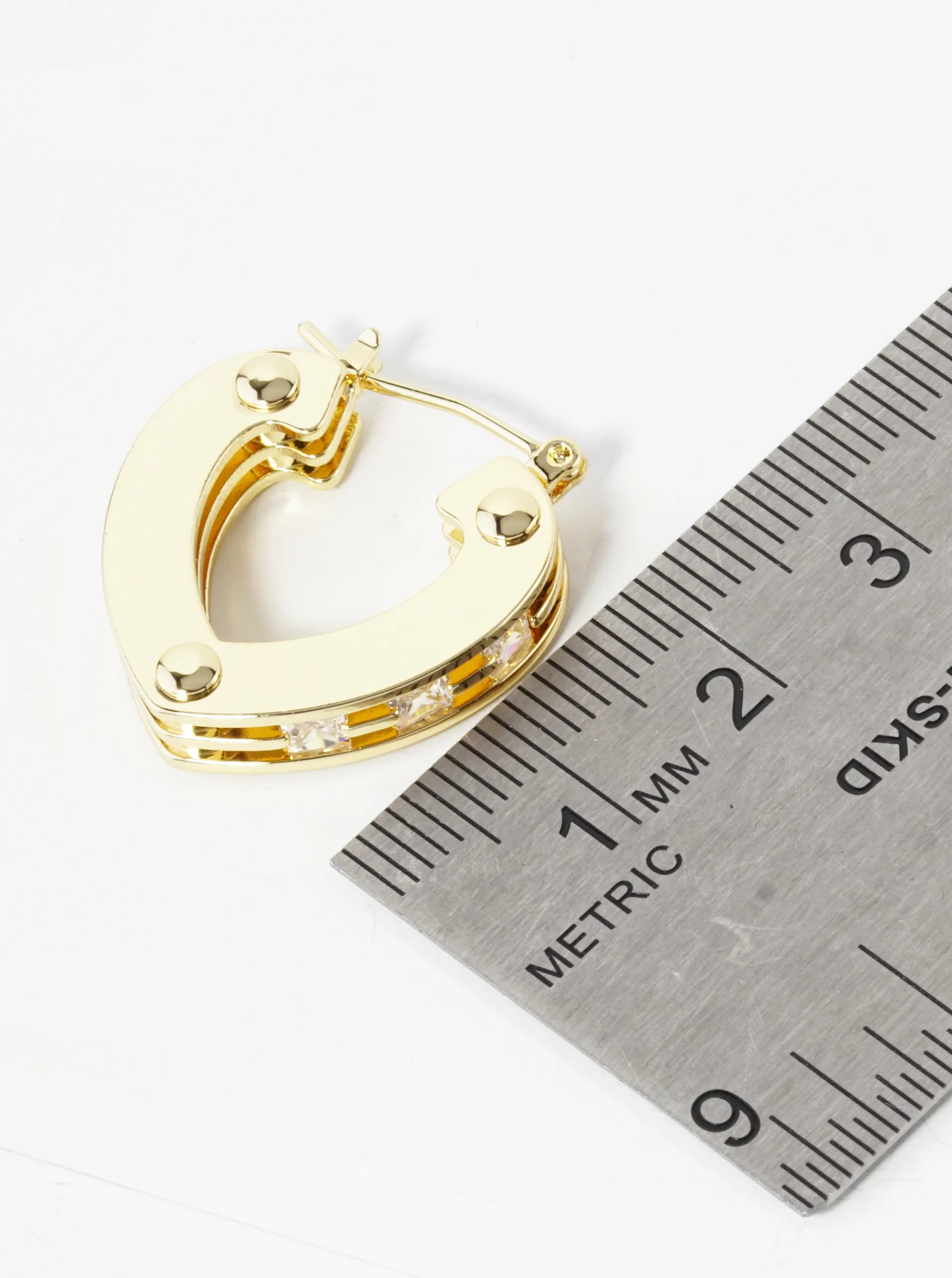 The 14K Gold Dipped Heart Shape Cubic Zirconia Latch Back Hoop Earrings Are A Sophisticated And Glamorous Accessory That Effortlessly Elevates Any Look. With Their Timeless Hoop Design, Romantic Heart-shaped Accents, And Luxurious Gold Plating, They Make A Stunning Addition To Any Jewelry Collection.