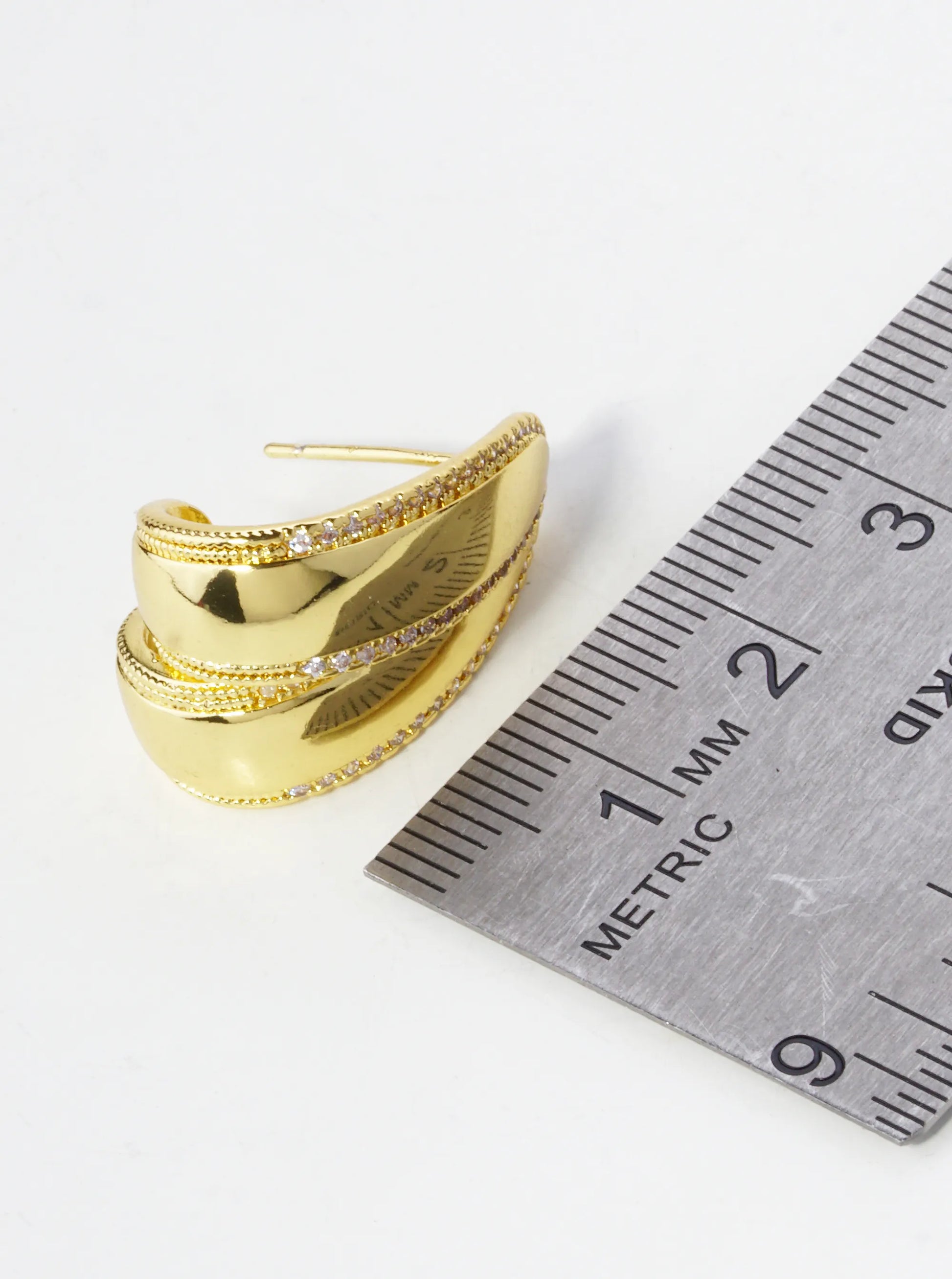 These Earrings Feature A Double Hoop Design Adorned With Micro Pave-set Cubic Zirconia Stones, Offering A Delicate Yet Dazzling Appearance. Crafted With 14K Gold Dipping, They Provide A Luxurious And Versatile Accessory Option Suitable For Adding Sparkle To Any Outfit.