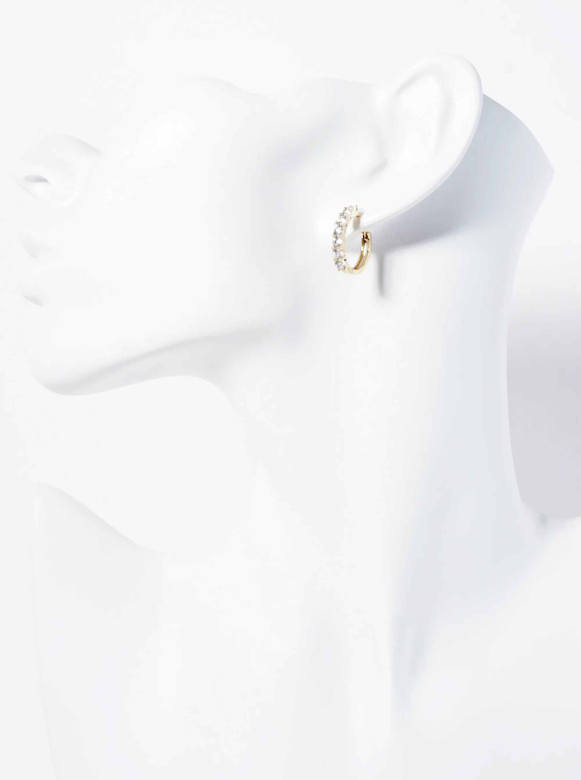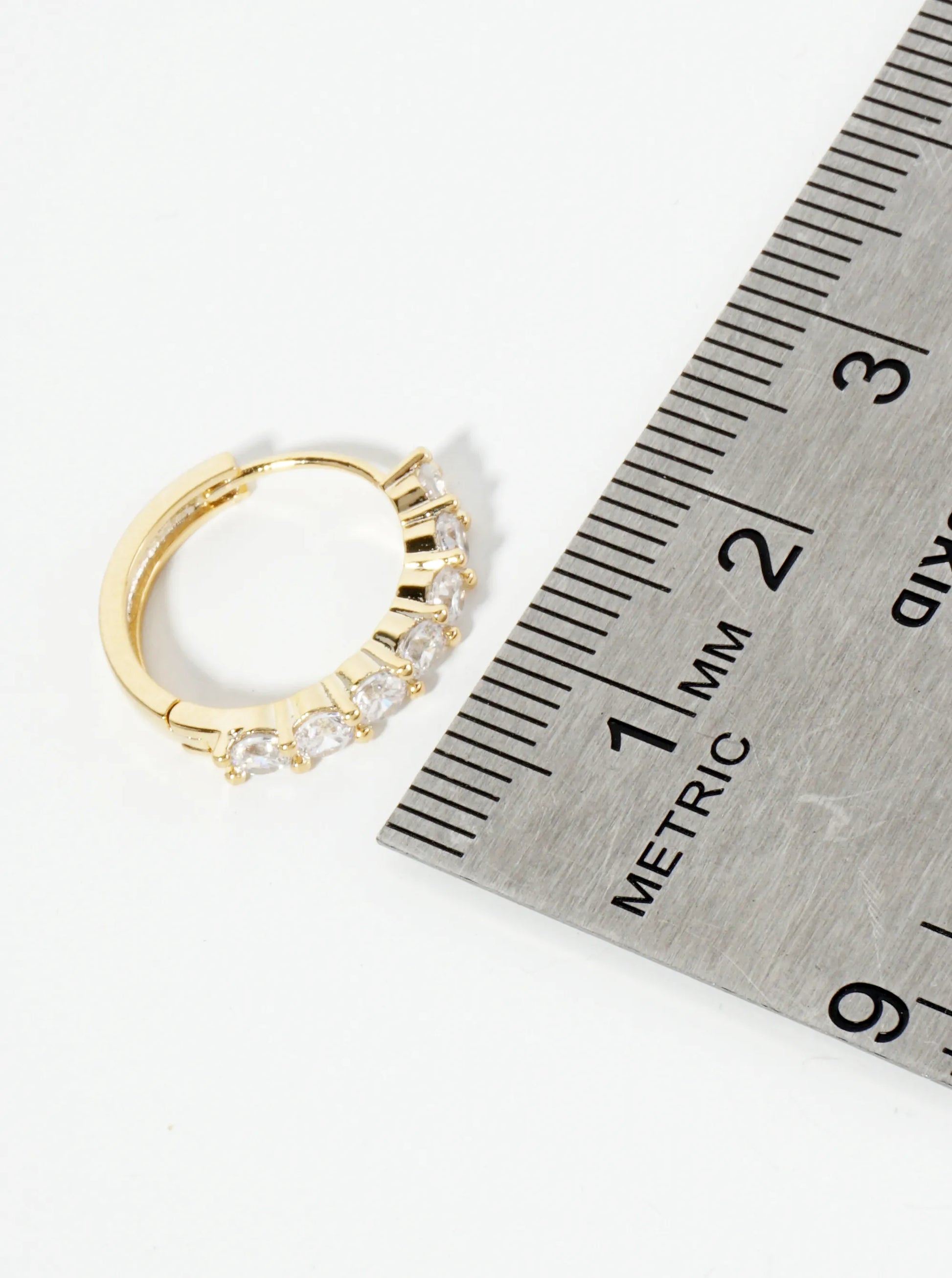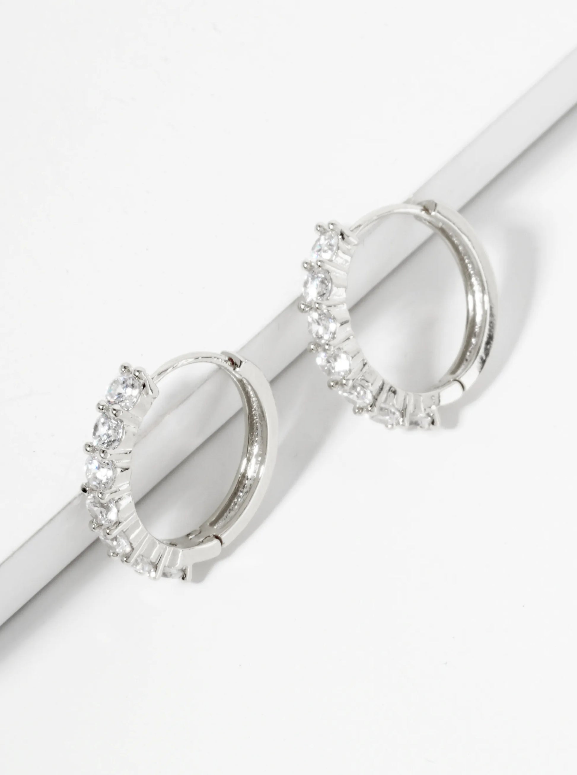 These Earrings Feature A Sleek 15mm Hoop Design Adorned With A Full Row Of Sparkling Cubic Zirconia Stones. The Pave Setting Ensures That The Stones Are Closely Set Together, Maximizing Their Brilliance And Creating A Continuous Shine Across The Earrings. These Huggie Hoops Sit Snugly Around The Earlobe, Offering A Comfortable Fit With A Secure Latch-back Closure.