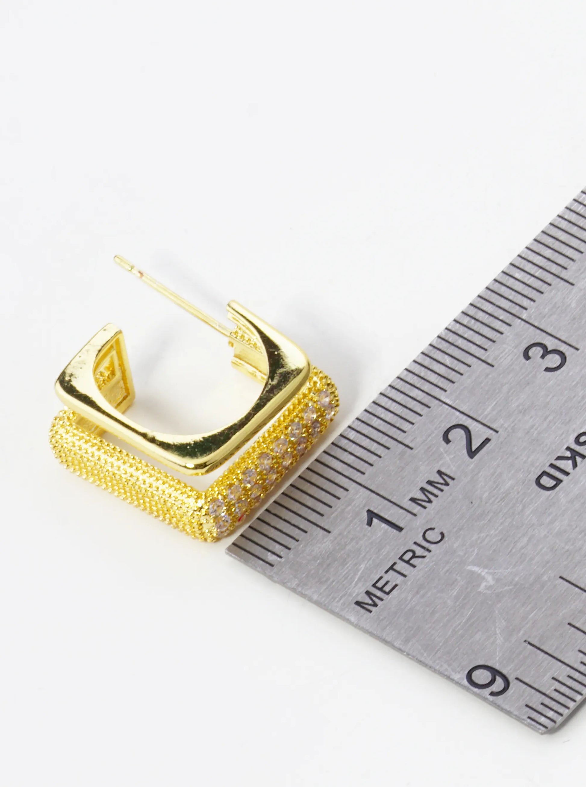 These Earrings Feature A Double Hoop Design Crafted With 14K Gold Dipping And Embellished With Pave-set Cubic Zirconia Stones, Adding Sparkle And Sophistication. With A Distinctive Square Shape And A Size Of 17mm, They Offer A Stylish And Elegant Accessory Option For Any Occasion.