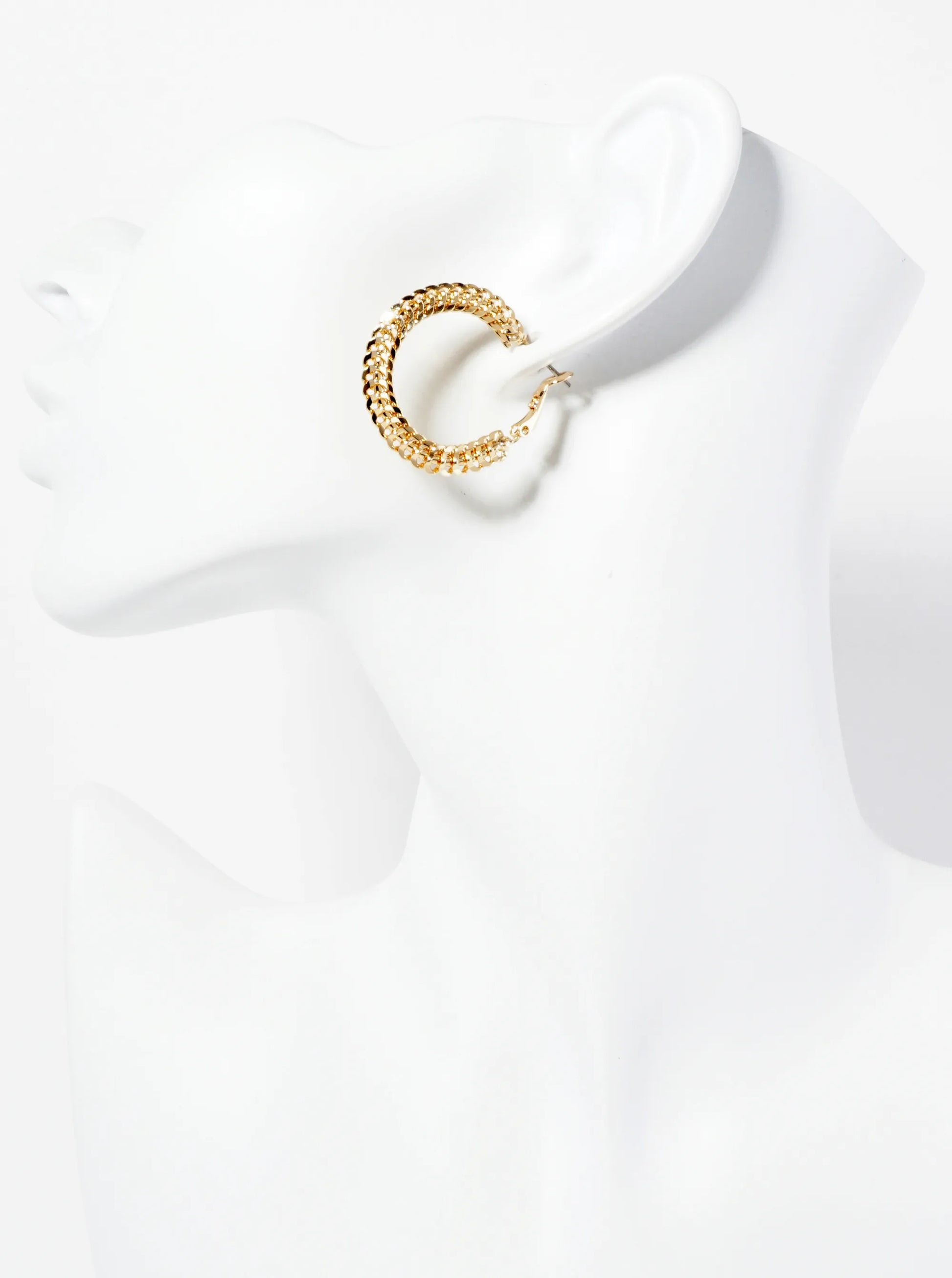 14K-Gold-Dipped Polished 30mm Chain Design Latch-Back Hoop Earrings