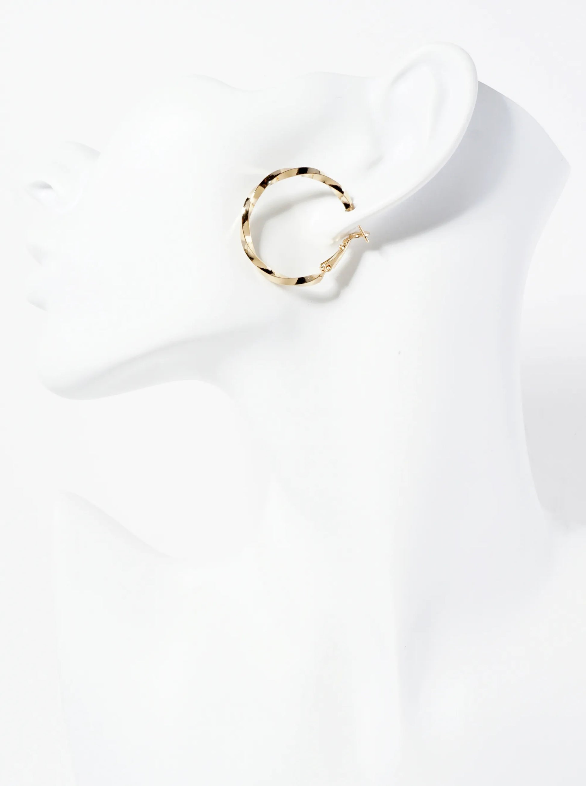 These 30mm Twist Latch-back Hoop Earrings Feature A Polished Metal Finish That Radiates Sleek Sophistication. The Gentle Twist Design Adds A Dynamic And Modern Touch To The Classic Hoop Silhouette, Creating A Sense Of Movement And Elegance. With A Secure Latch-back Closure For Comfort And Ease Of Wear, These Earrings Are The Perfect Accessory To Elevate Your Everyday Style Or Complement A Chic Evening Look.