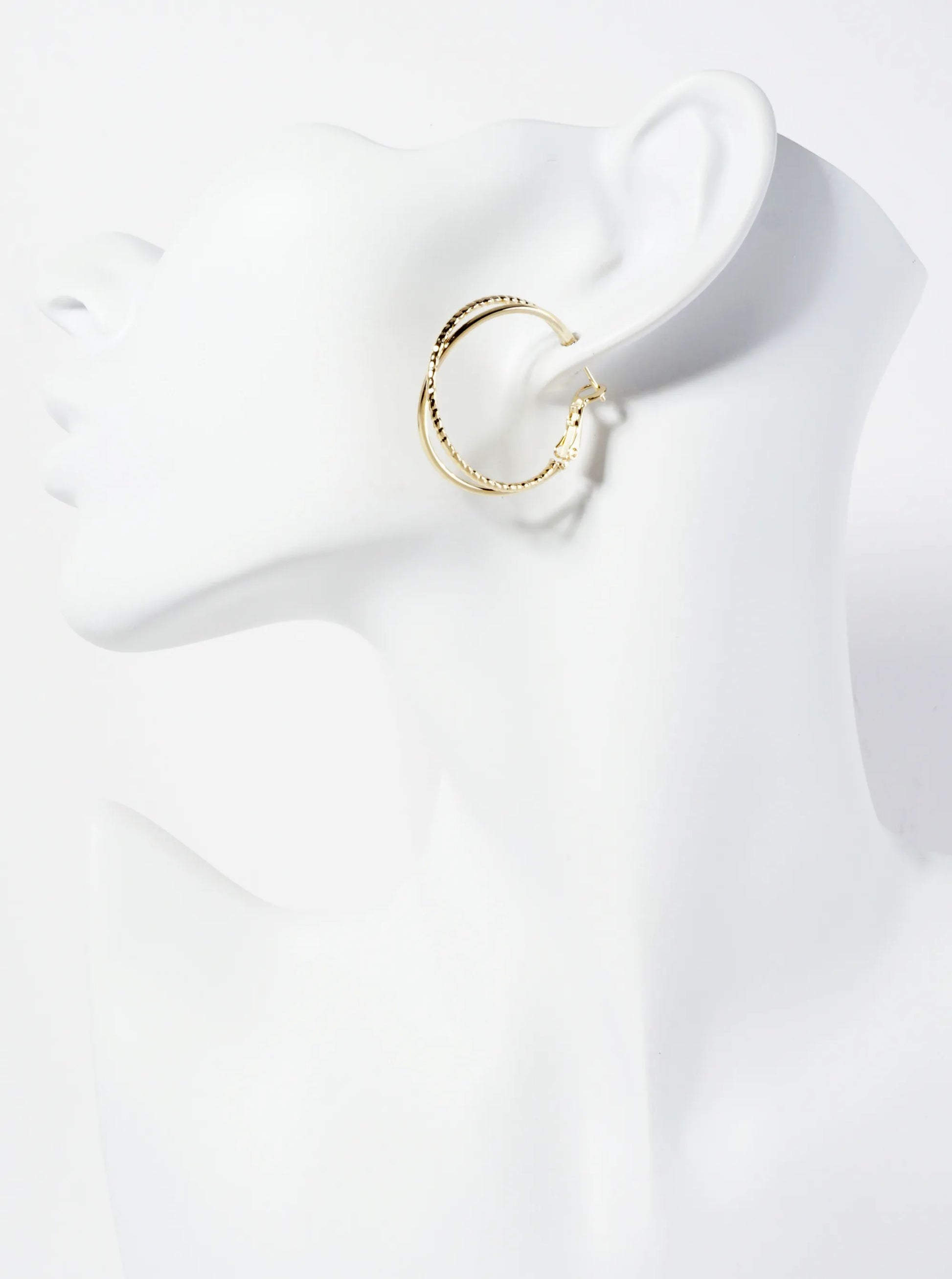 These 30mm Latch-back Hoop Earrings Feature A Textured Crossover Design, Where Polished And Textured Metal Strands Intertwine To Create A Striking And Dynamic Look. The Interplay Of Textures Adds Depth And Dimension, Making These Earrings A Bold Yet Elegant Statement Piece. Secured With A Latch-back Closure For Comfortable Wear, They Are Perfect For Adding A Sophisticated And Contemporary Flair To Any Outfit.
