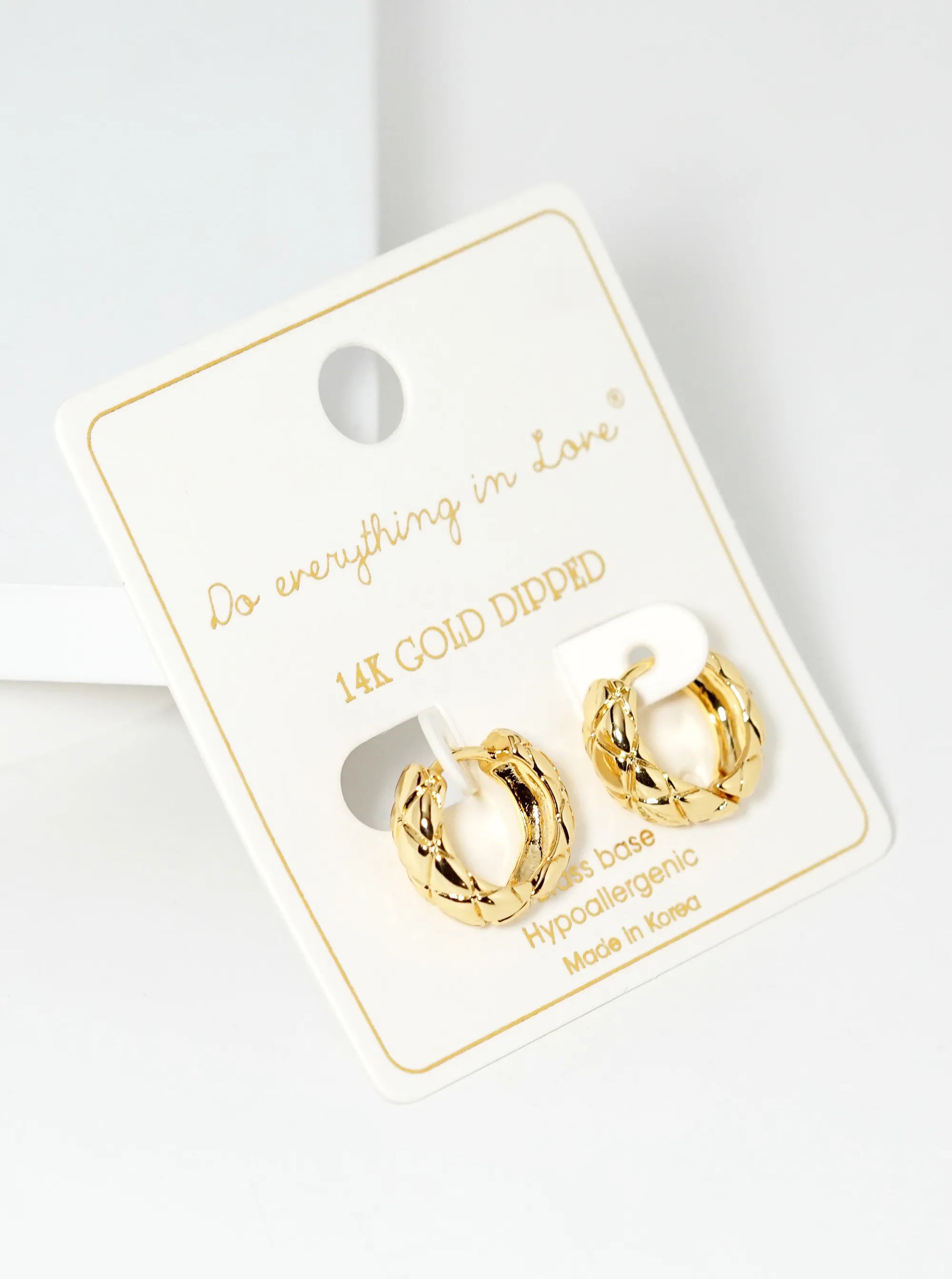 14K Gold Dipped Textured 9mm Brass Huggie Hoop Earrings