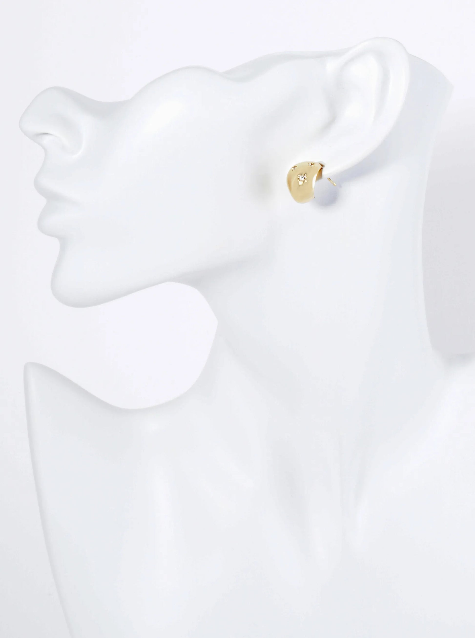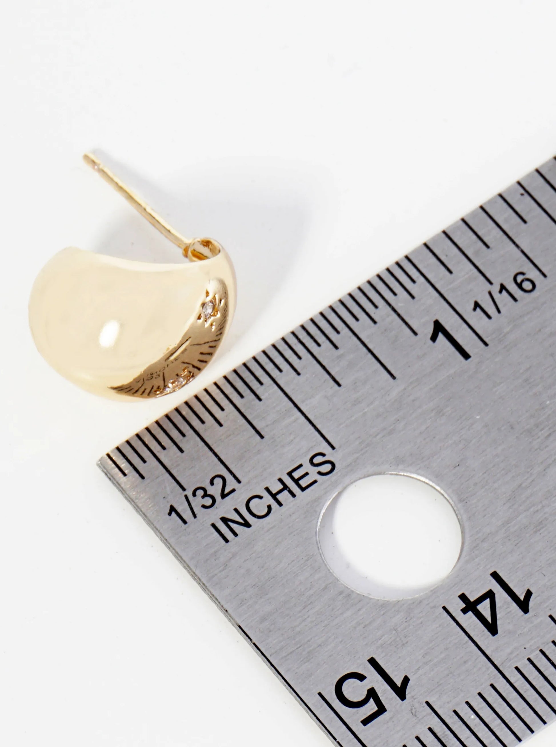 14K Gold Dipped Three CZ Stones Embedded Teardrop Small Hoop Earrings