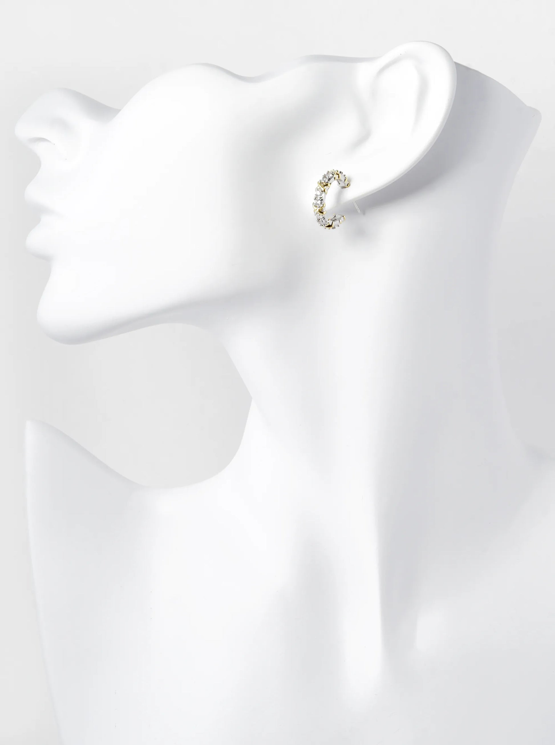 These Earrings Showcase An Open Hoop Style, Creating A Modern And Minimalist Aesthetic. The Hoops Are Adorned With Cubic Zirconia Stones, Adding Sparkle And Elegance To The Design. The Open Hoop Design Allows For Movement And Flexibility, Enhancing The Earrings' Overall Appeal.