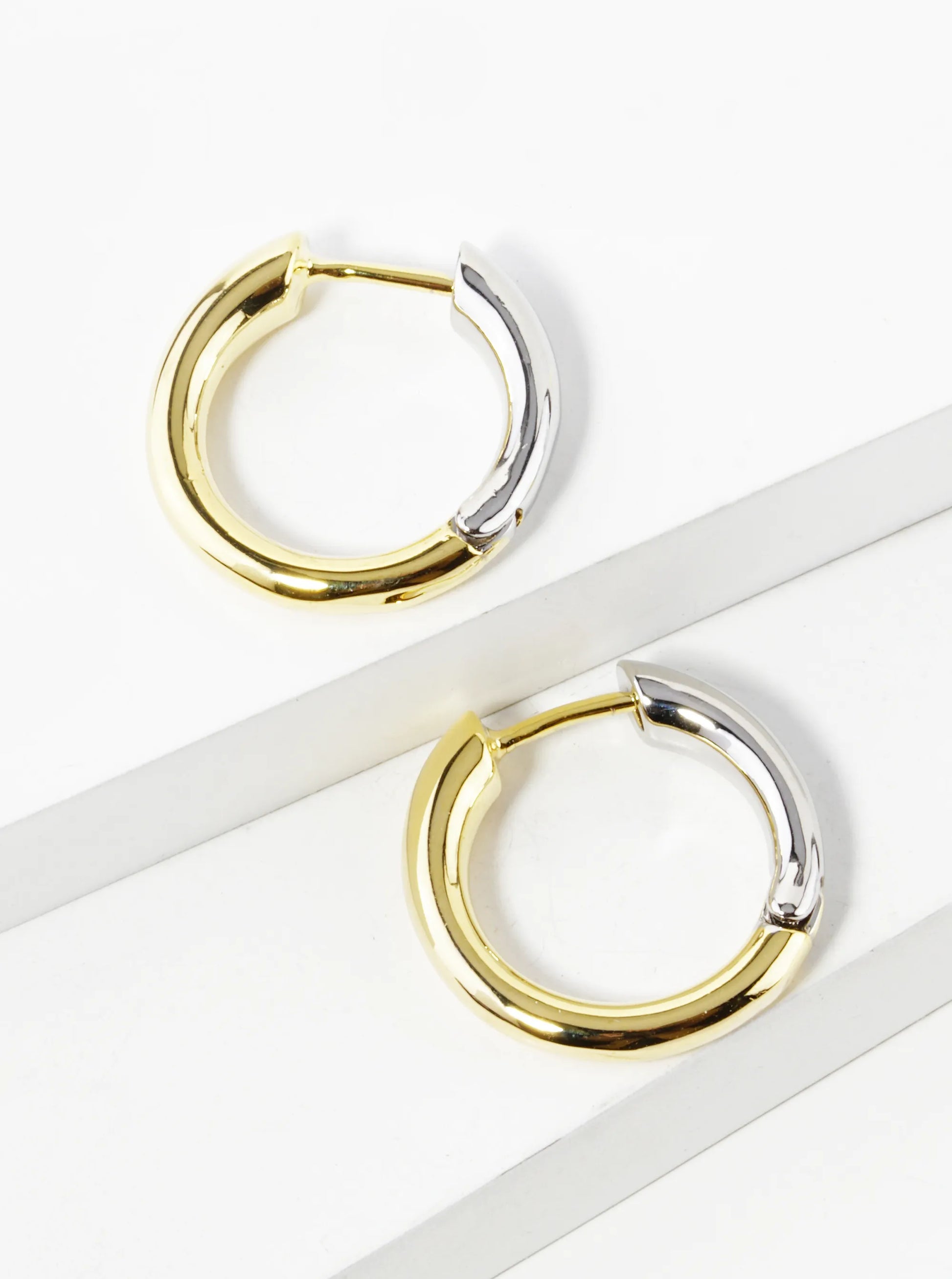 14K Gold Dipped Two-Tone 20mm Huggie Hoop Earrings