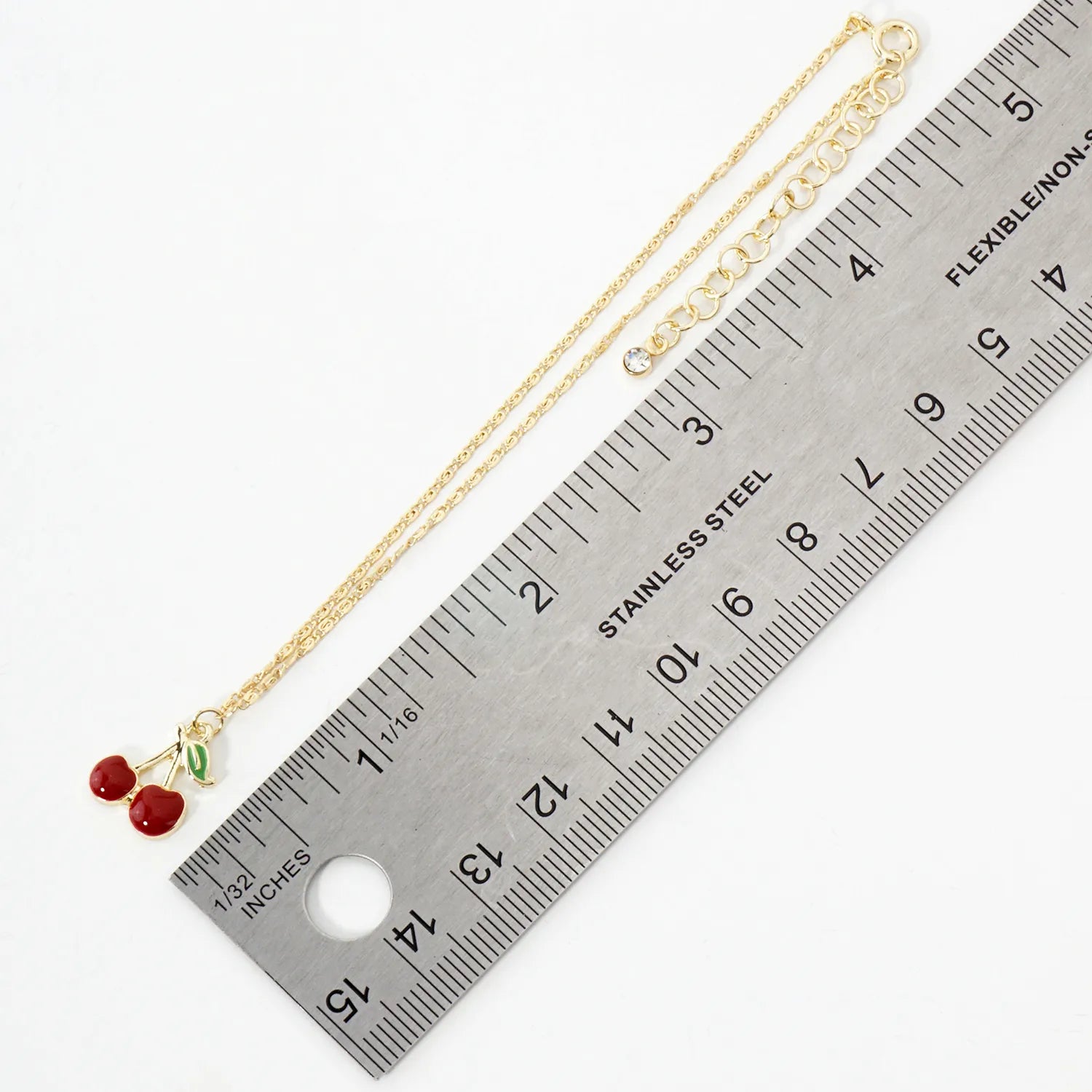14mm Enamel Cherry Charm 18K-Gold-Dipped Brass Anklet