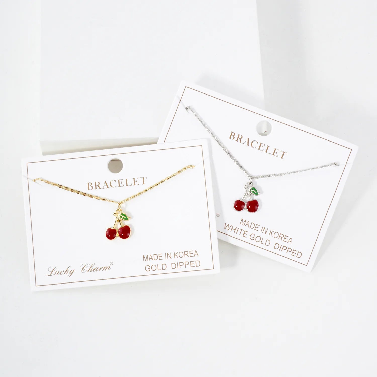 Add A Playful Pop To Your Wrist Stack With This 14mm Enamel Cherry Charm Bracelet, Featuring A Glossy Red Cherry Accent Dipped In Warm 18K Gold Over High-quality Brass. Petite Yet Full Of Personality, This Bracelet Strikes The Perfect Balance Between Sweet Charm And Refined Elegance.