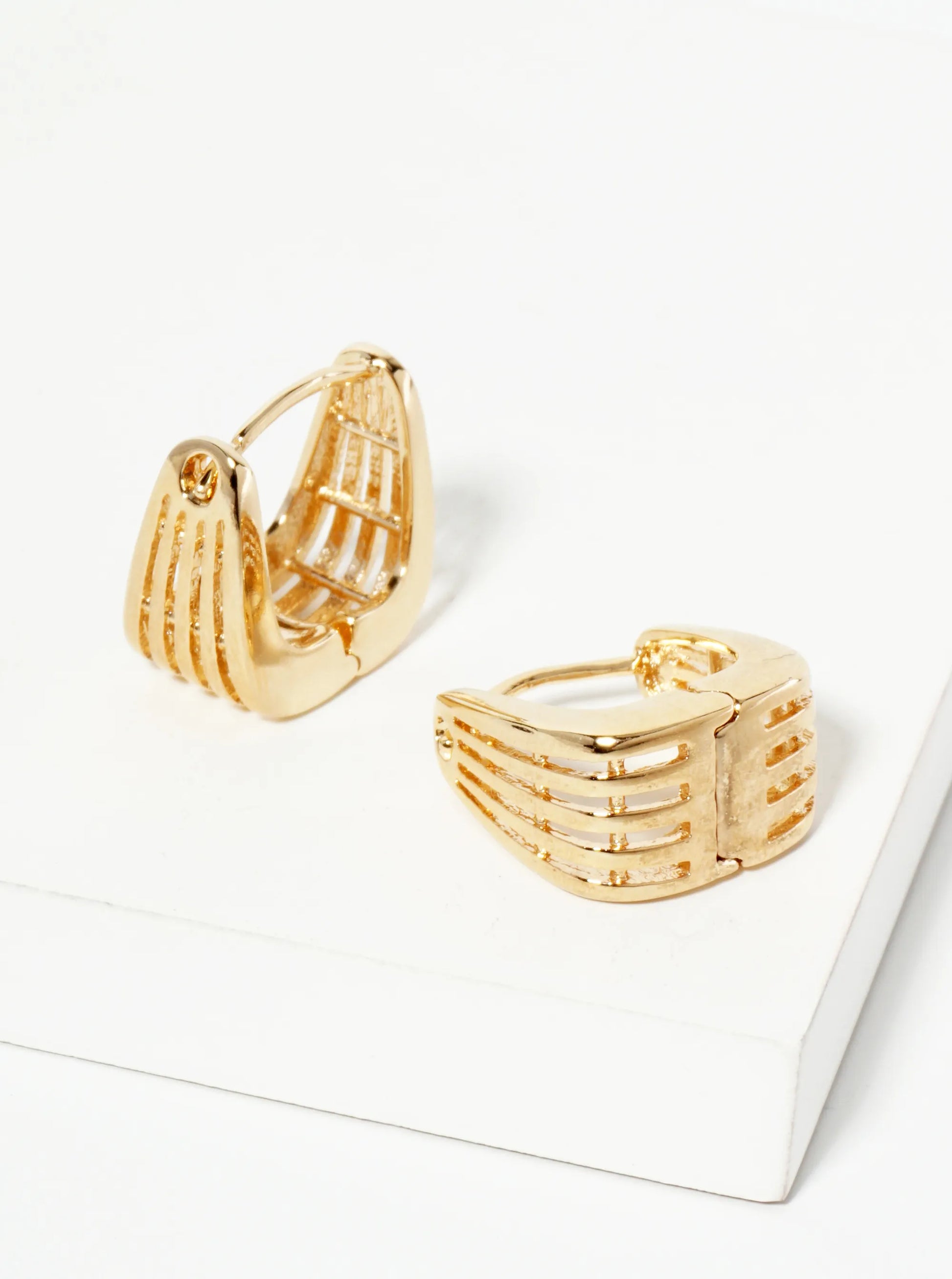 15mm Rectangular Shape Filigree Huggie Hoop Earrings