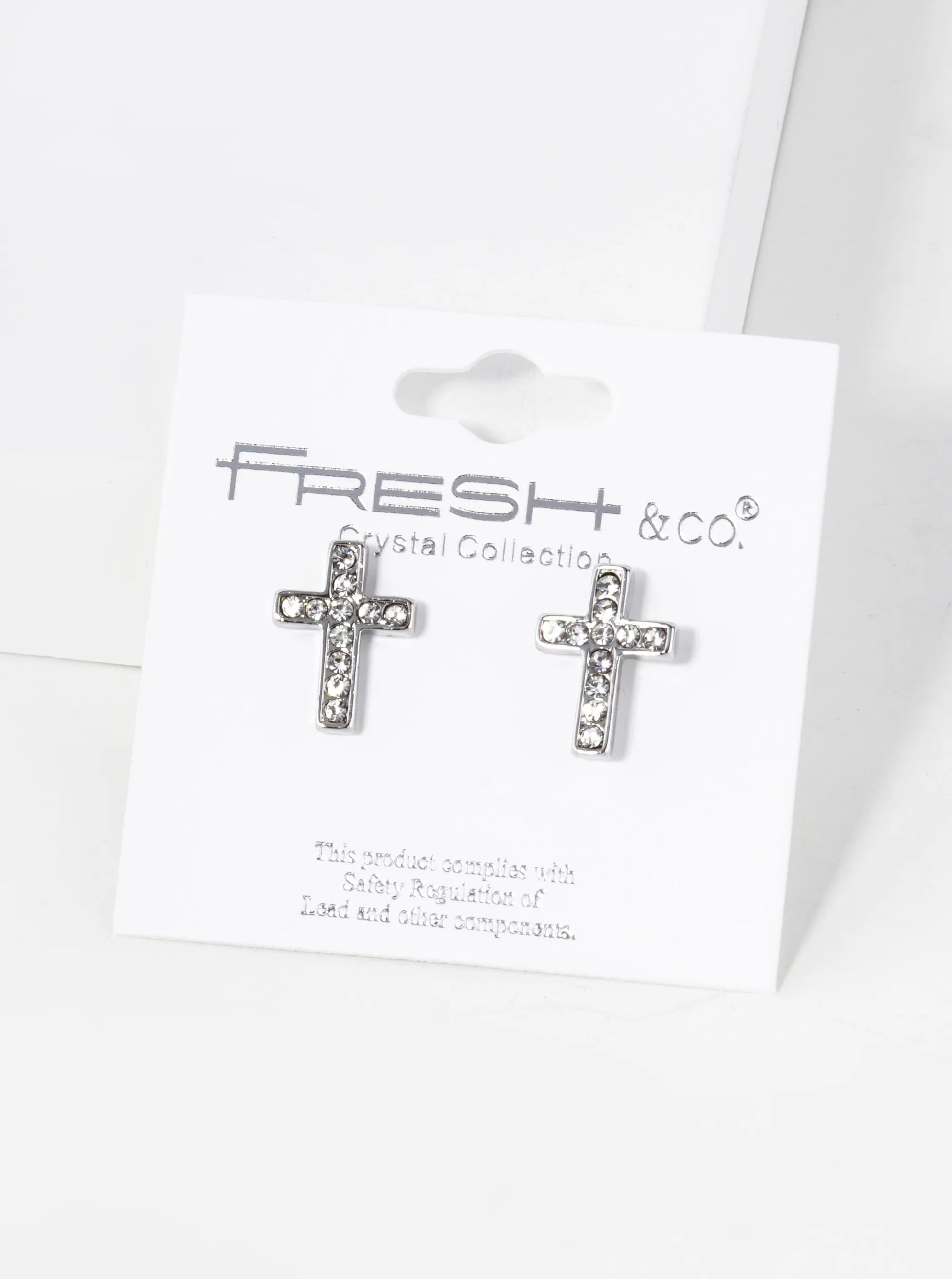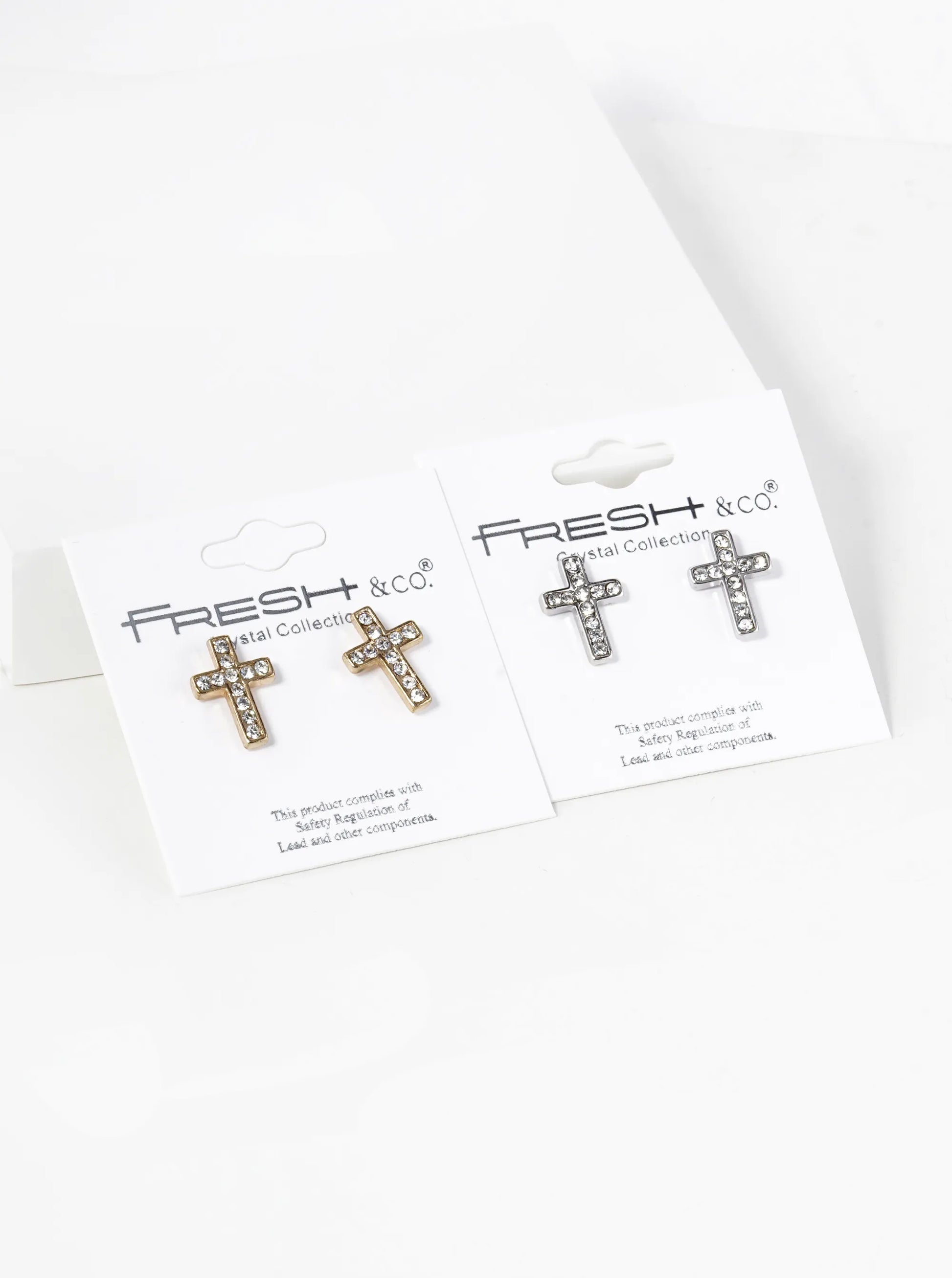 They Showcase A Cross Design Adorned With Sparkling Crystal Pave, Adding A Touch Of Elegance And Sophistication. With A Diameter Of 16mm, These Stud Earrings Are Small Enough For Everyday Wear Yet Bold Enough To Make A Statement.