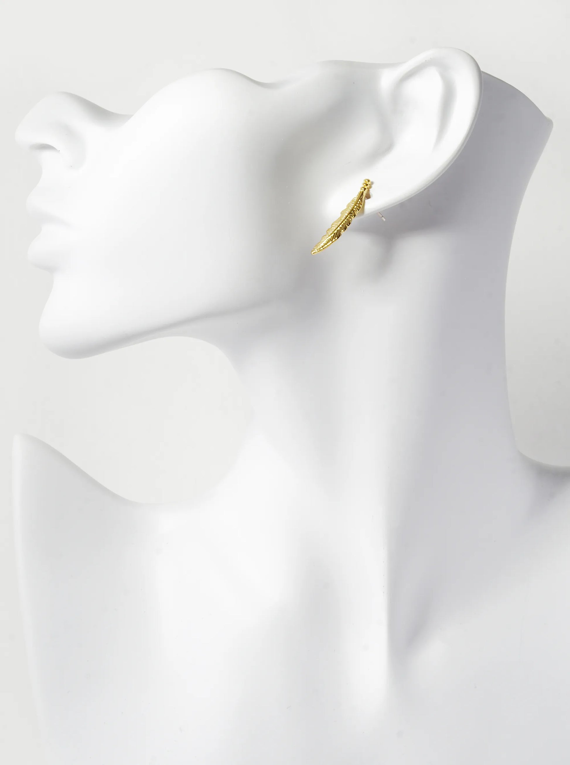 18K Gold Dipped 1 Inch Textured Brass Feather Sterling Silver Post Stud Earrings