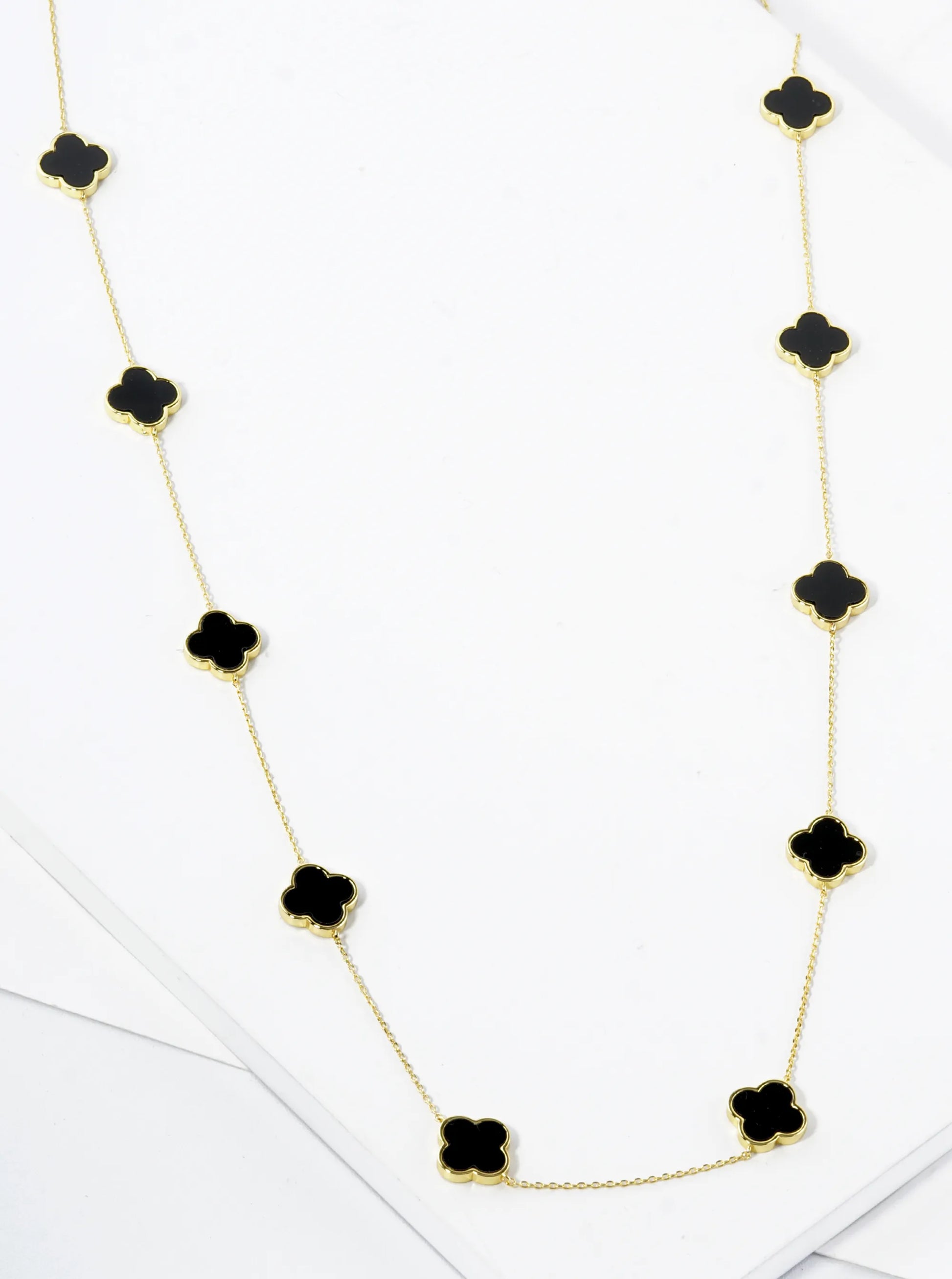 18K Gold Dipped 10 Quatrefoil 32 Inch Long Station Necklace