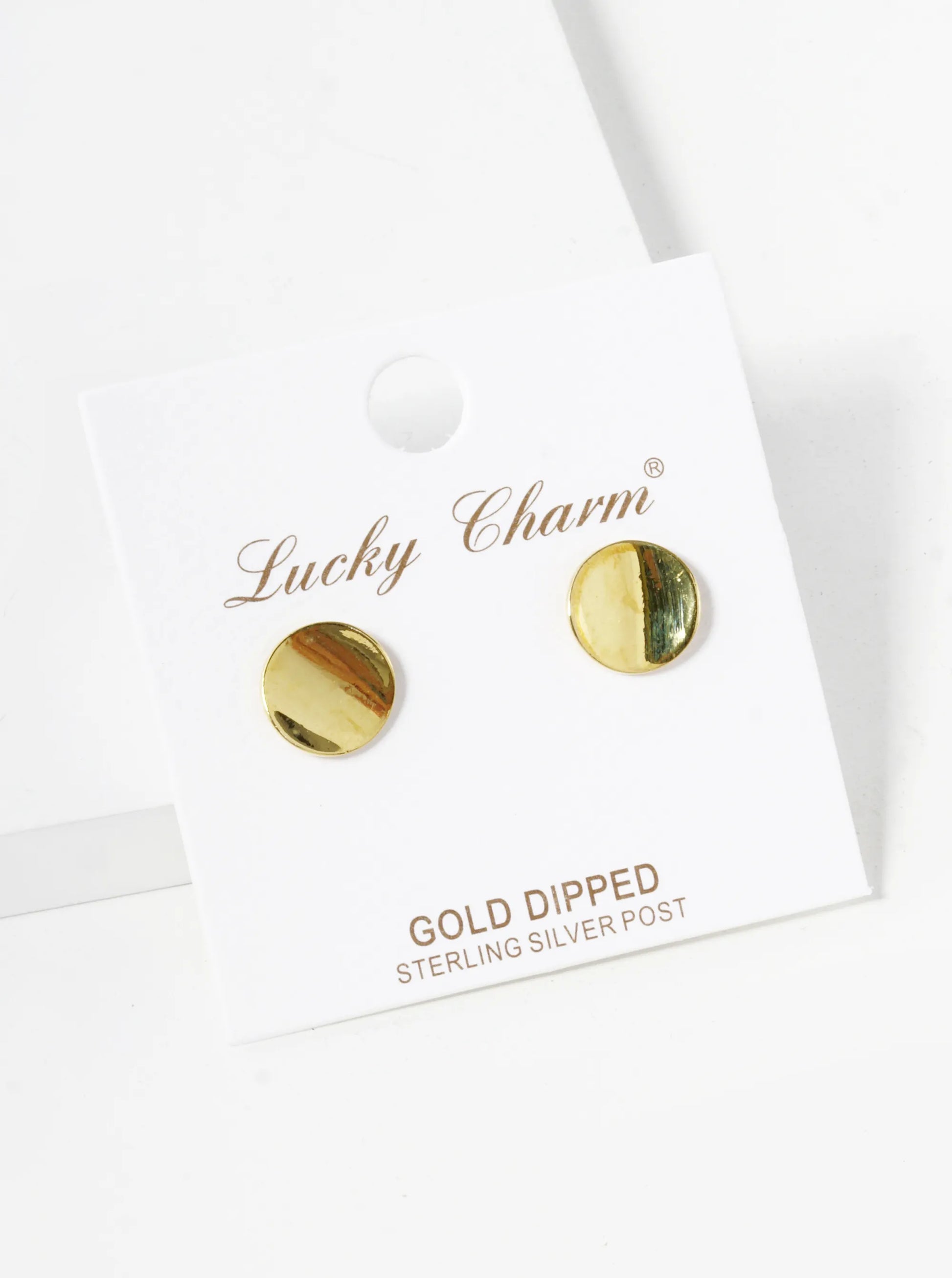 18K Gold Dipped 10mm Curved Brass Round Sterling Silver Post Stud Earrings
