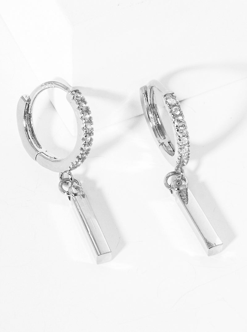 18K Gold Dipped 10mm CZ Pave Huggie Hoop Earrings With Bar Drop