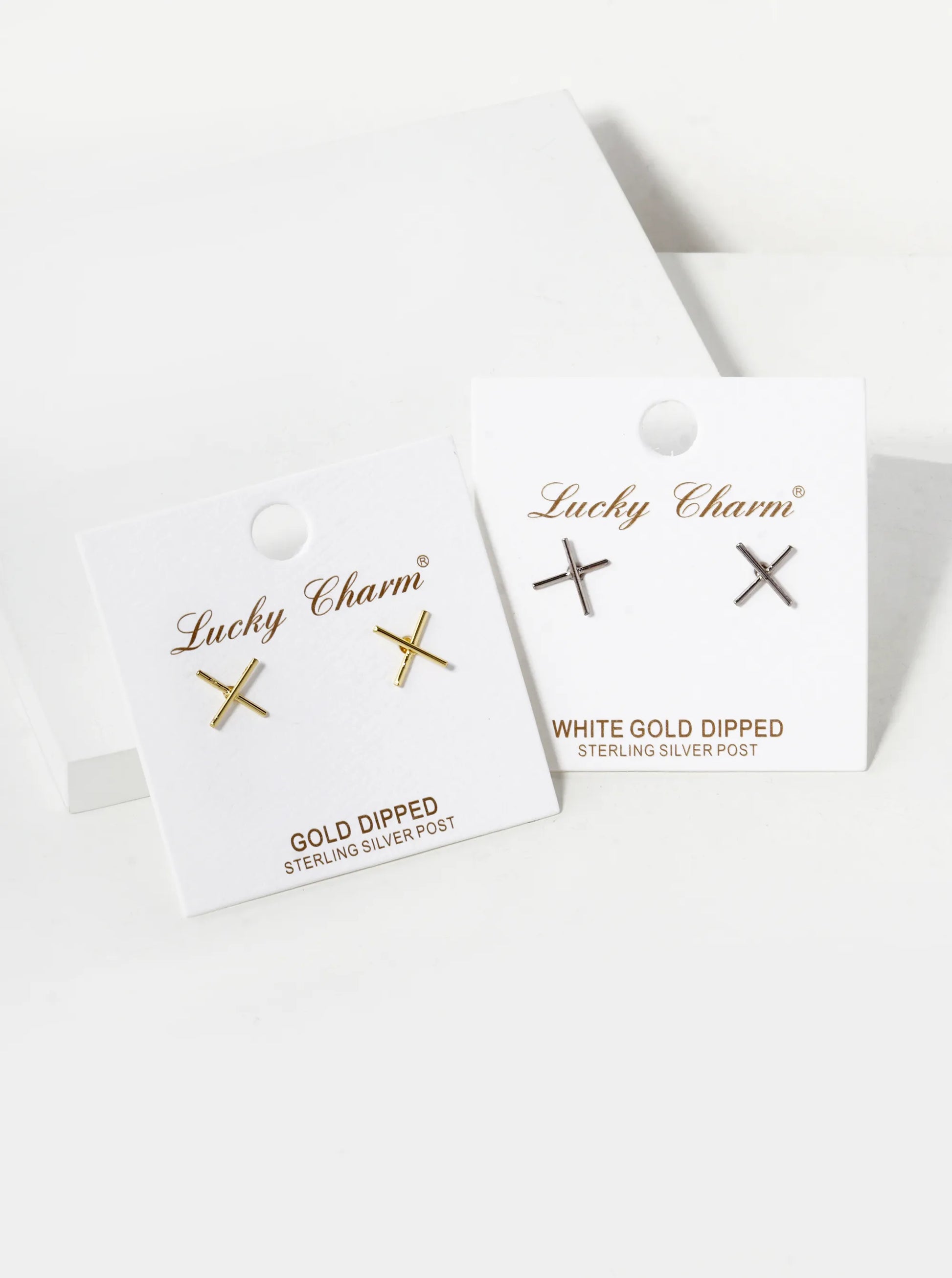 18K Gold Dipped 10mm Delicate Brass X Shape Sterling Silver Post Stud Earrings