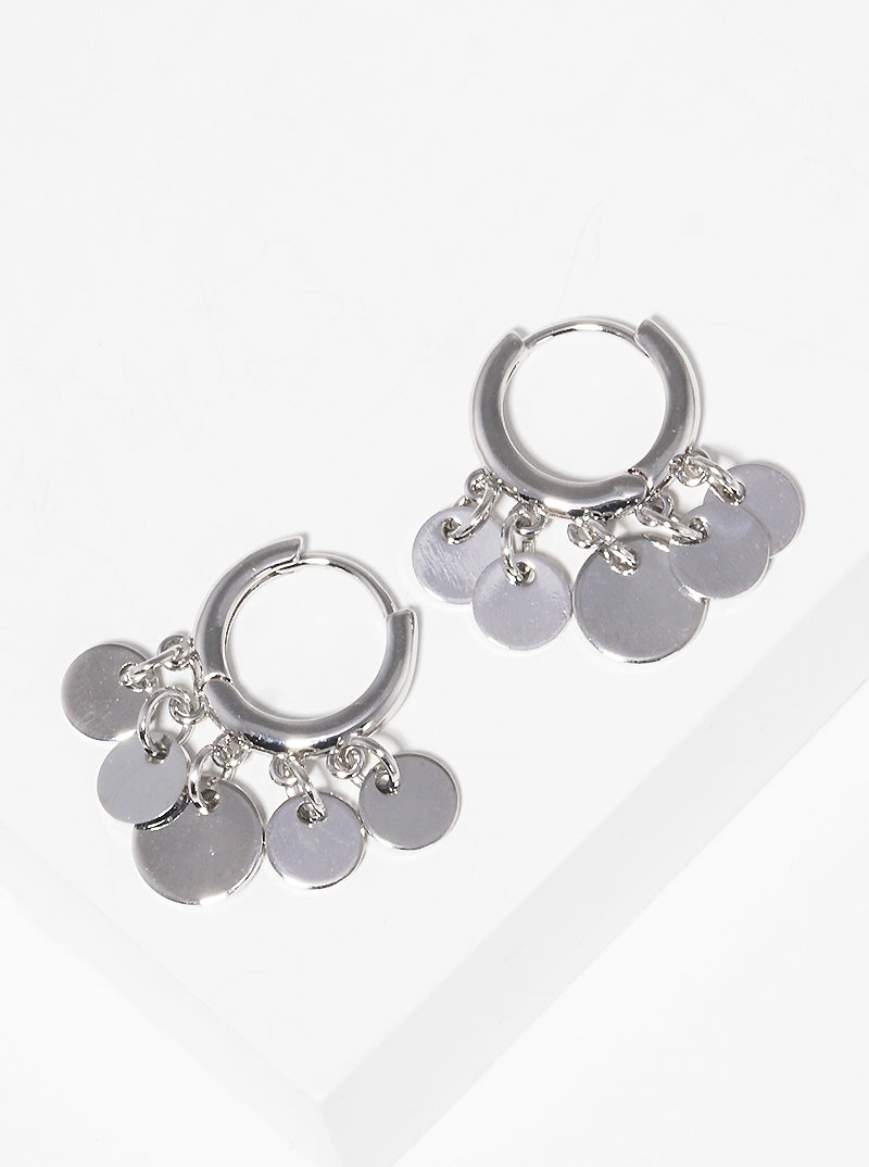18K Gold Dipped 10mm Huggie Hoop Earrings With Disc Fringe Drop
