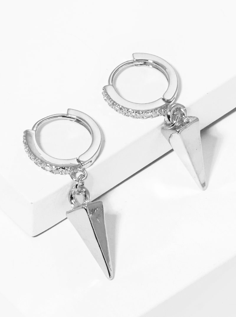18K Gold Dipped 10mm Huggie Hoop Earrings With Spike Drop Fringe