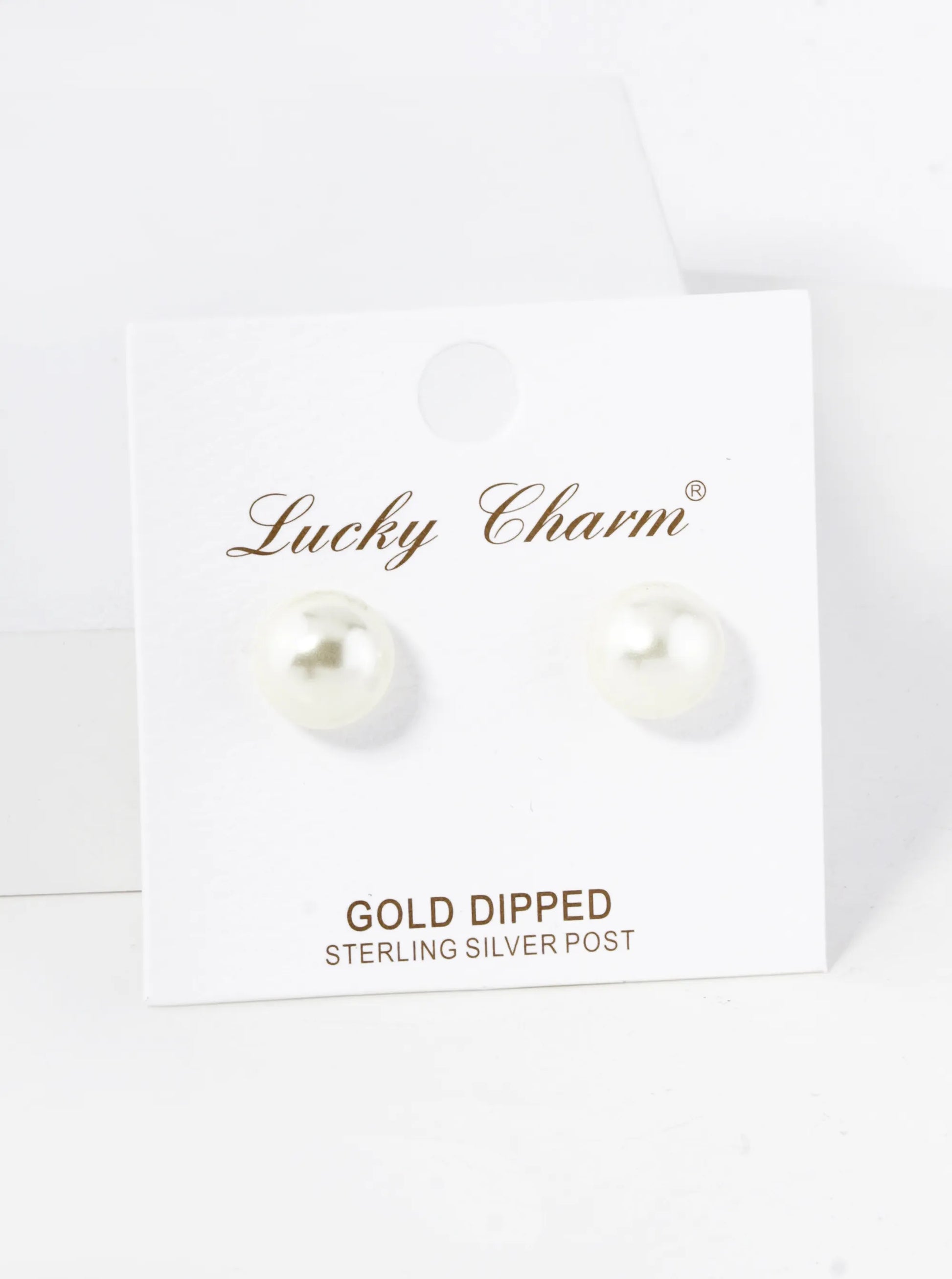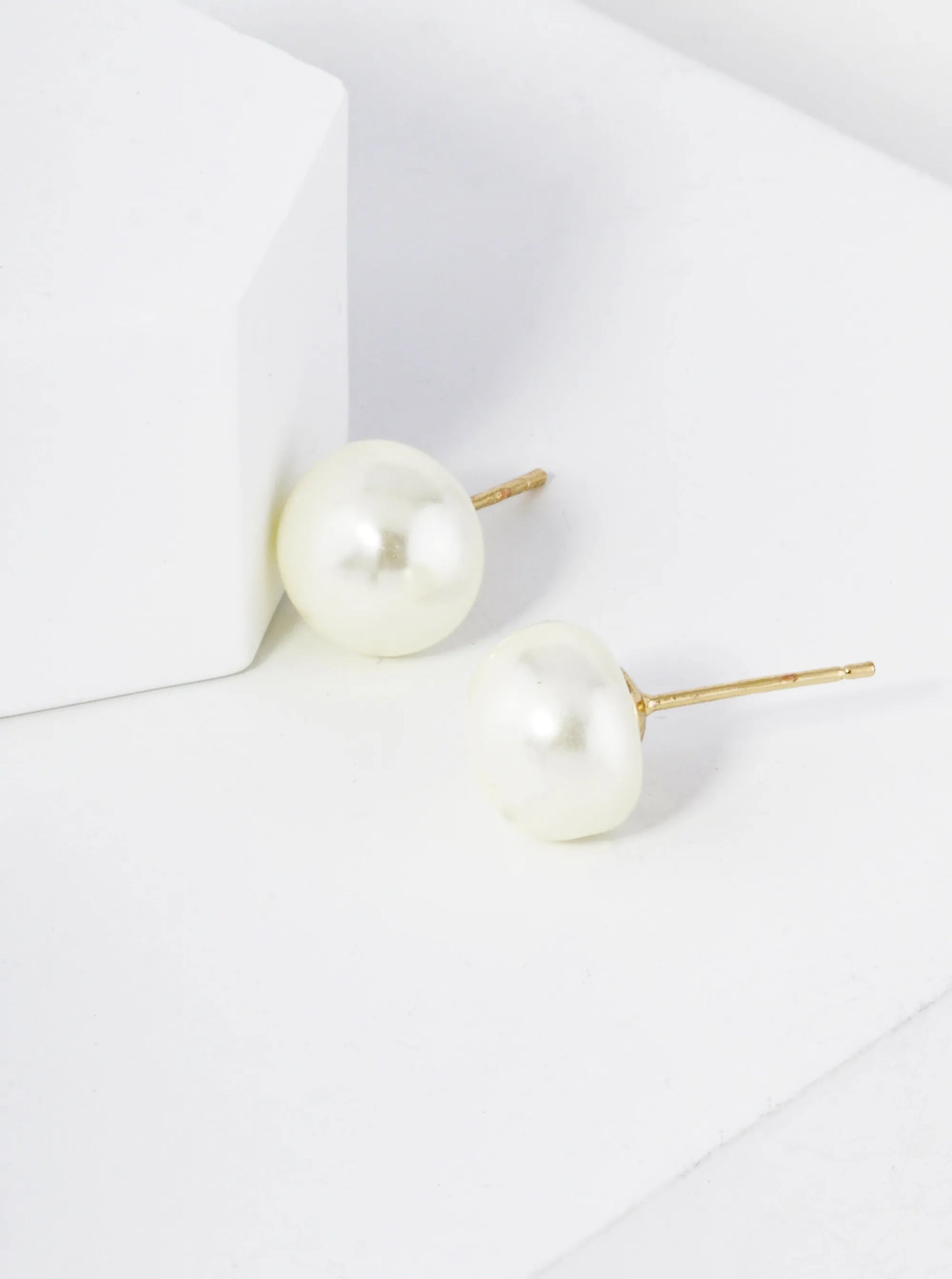 18K Gold Dipped 10mm Pearl Button Stud Earrings