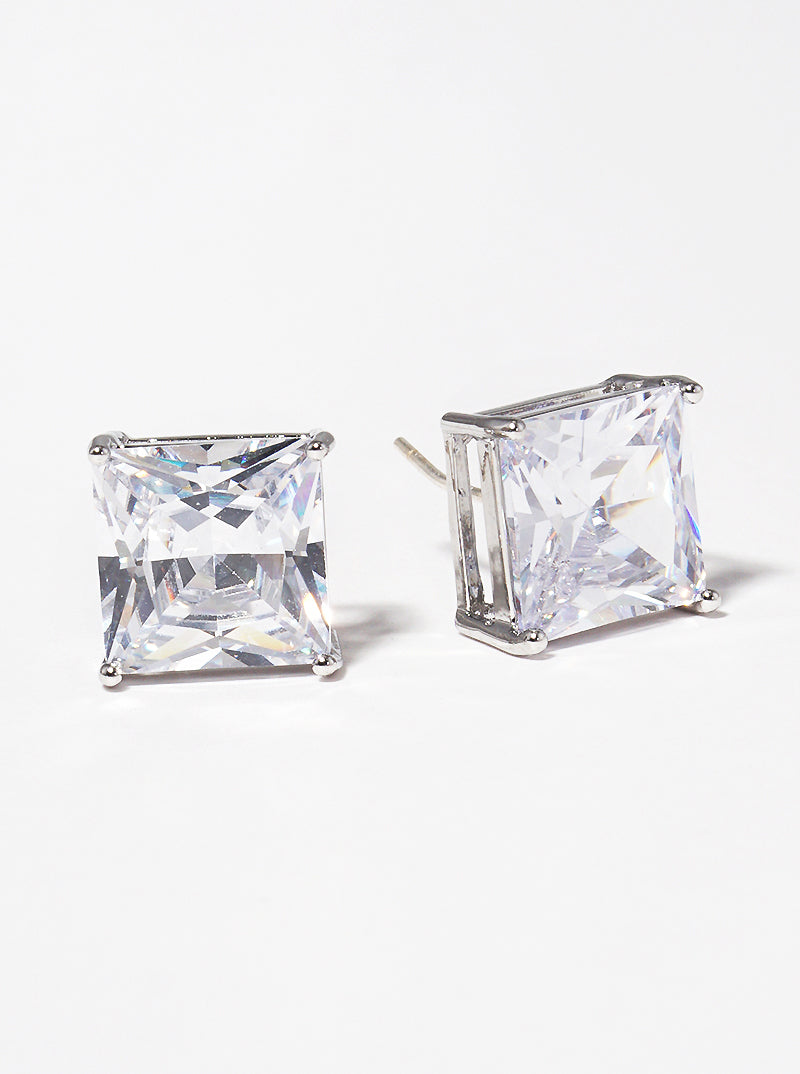 18K Gold Dipped 10mm Square CZ Sterling Silver Post Stud Earrings