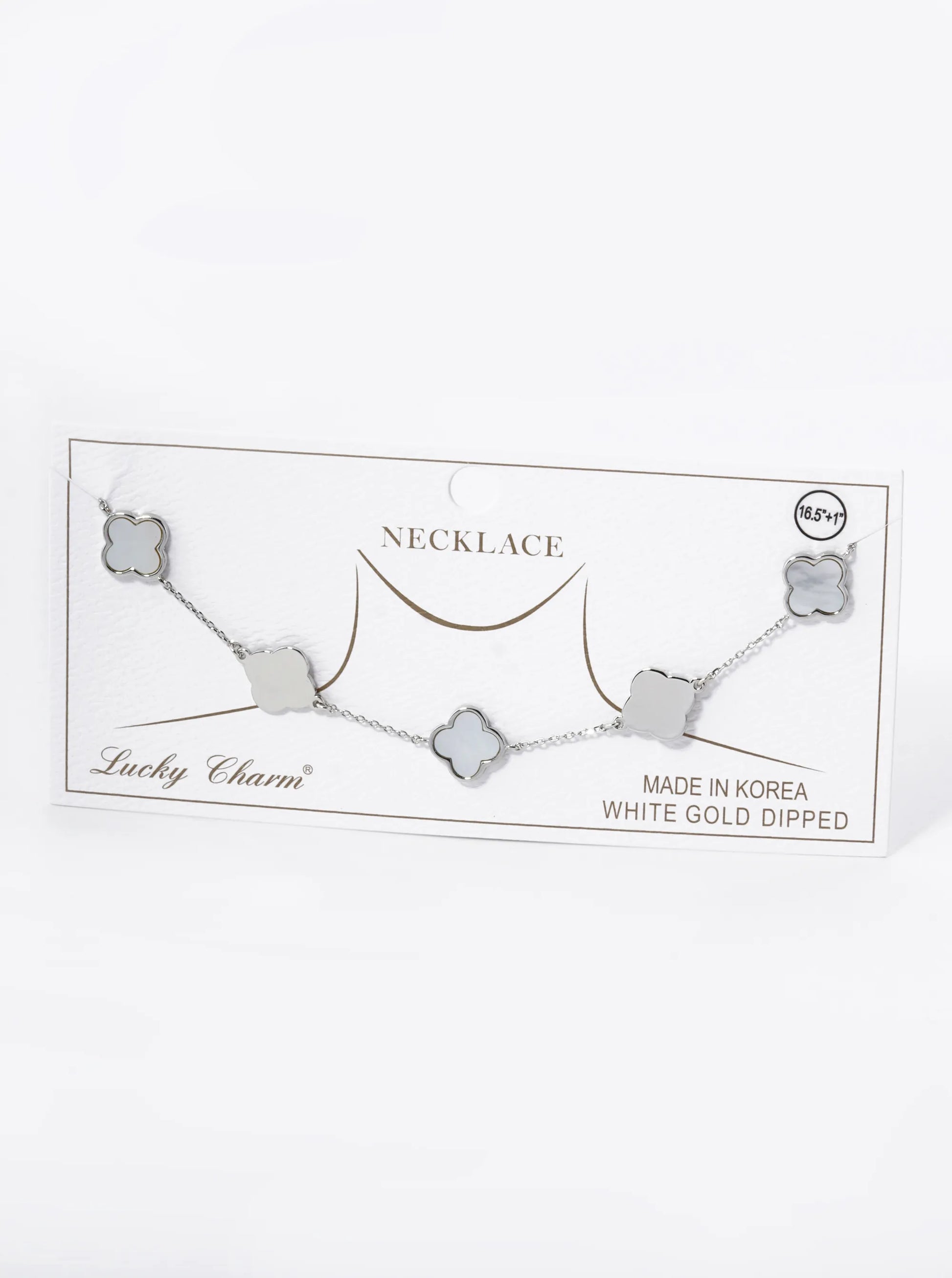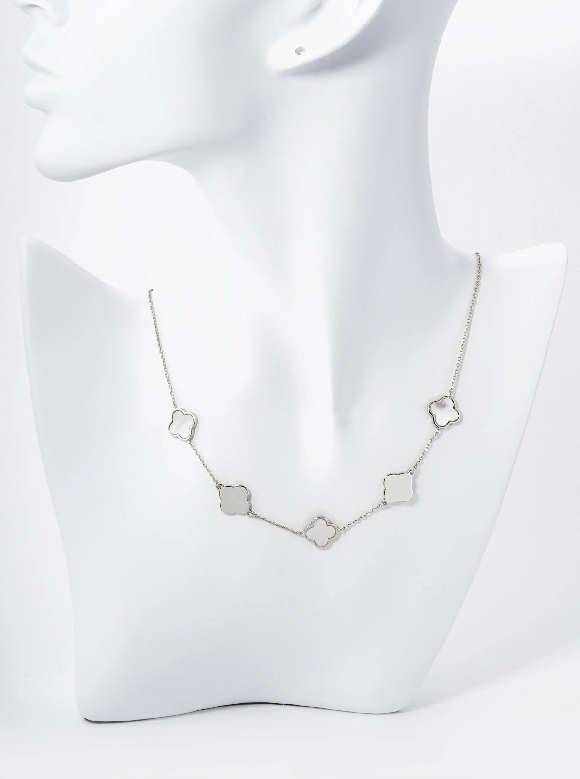 Experience Luxury Like Never Before With Our 18K Gold-dipped Quatrefoil Station Necklace. The Intricate Quatrefoil Design Boasts A Stunning Array Of Variation Color Options, Including Gold-black, Gold-green, Gold-pink, And More, Each Exuding A Rich Texture And Finish That Will Elevate Any Outfit.