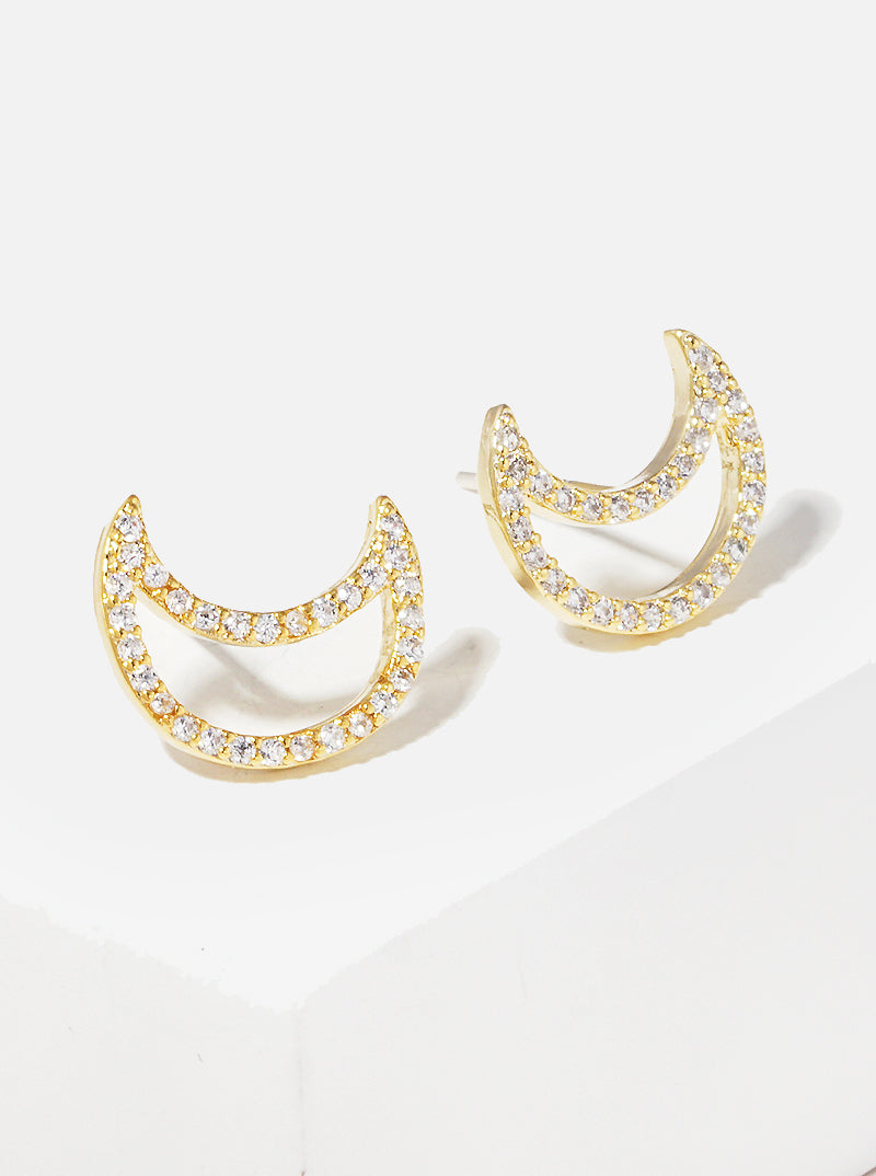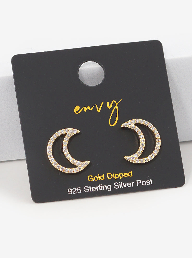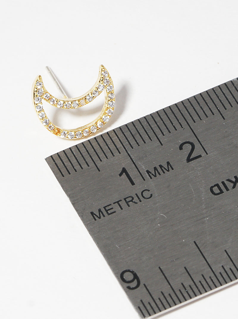 18K Gold Dipped 12mm CZ Moon Sterling Silver Post Stud Earrings
