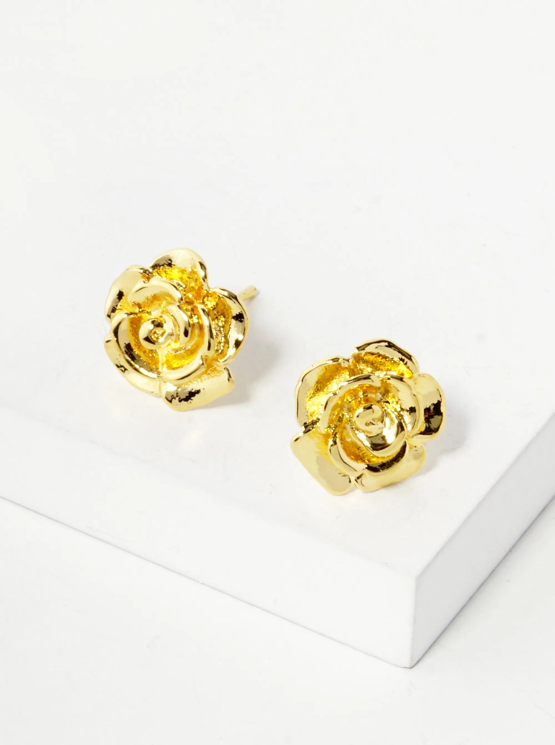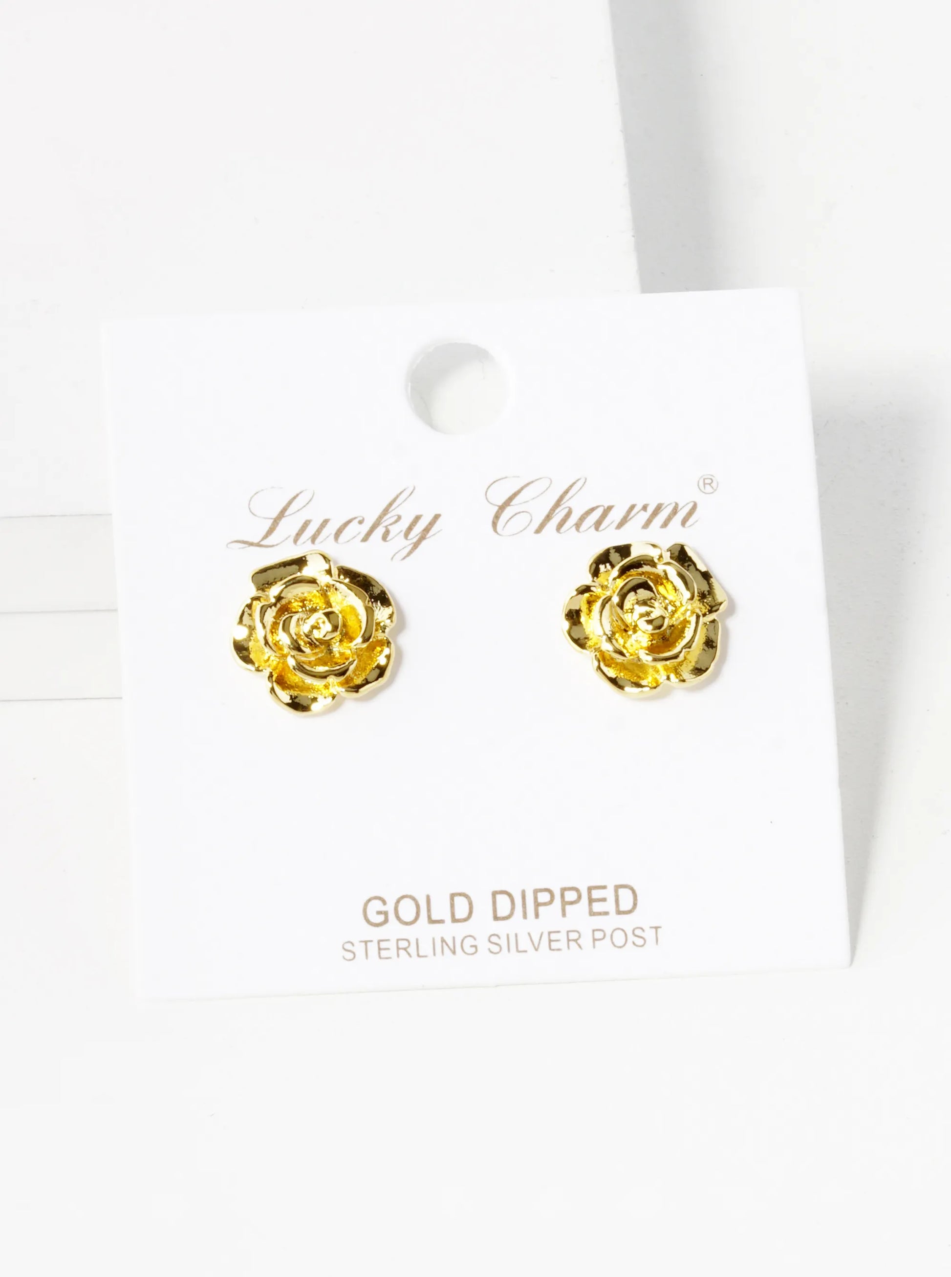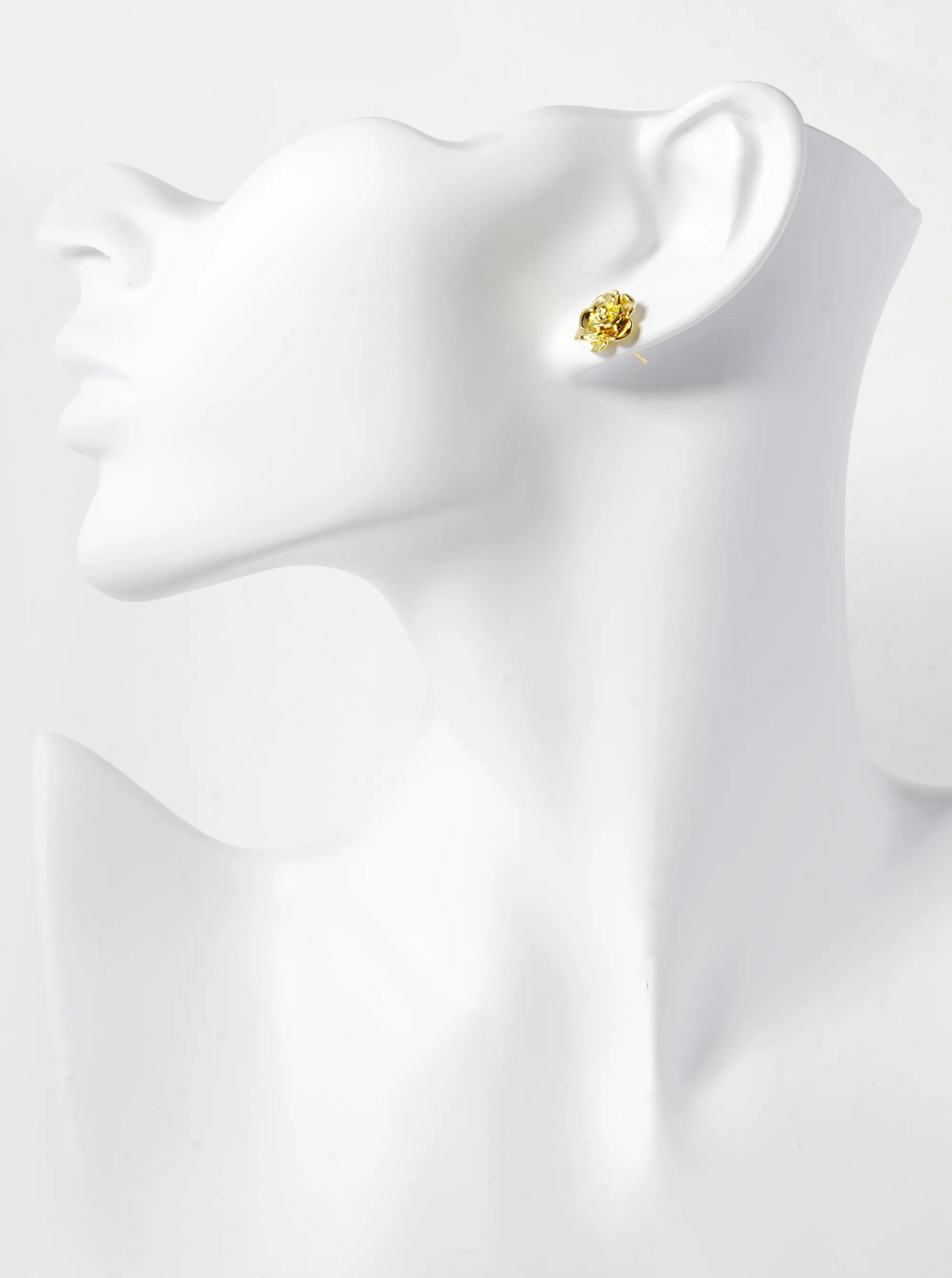 18K Gold Dipped 12mm Floral Brass Rose Sterling Silver Post Stud Earrings