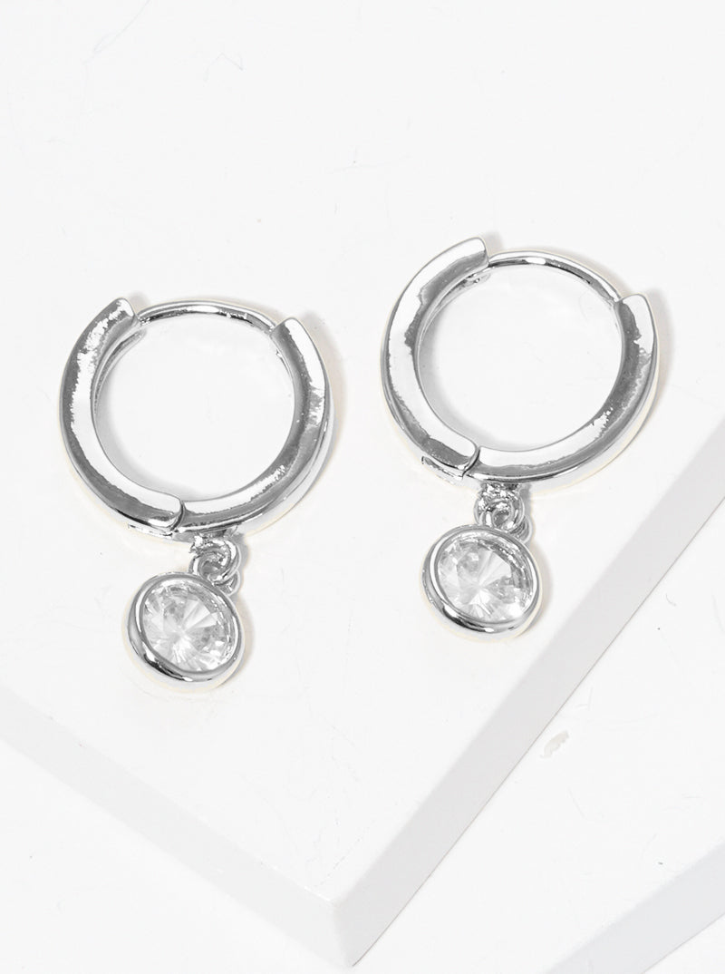 18K Gold Dipped 12mm Huggie Hoop Earrings With Round CZ Drop